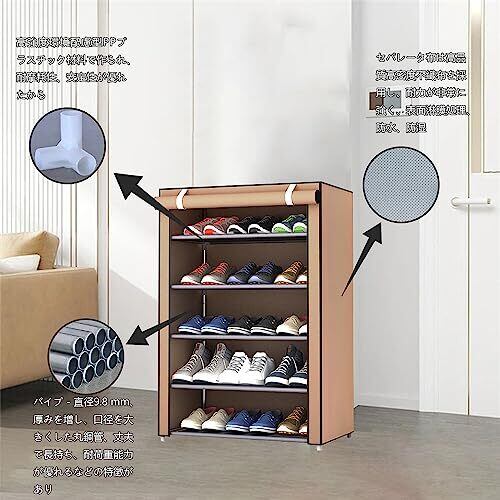 靴棚ラック 5層 シューズラック カバー付き 下駄箱 靴収納 靴棚 玄関収納ラック 不織布カバー付き 組み立て 省スペース 幅60×奥行30×高さ90cm【ブラウン】