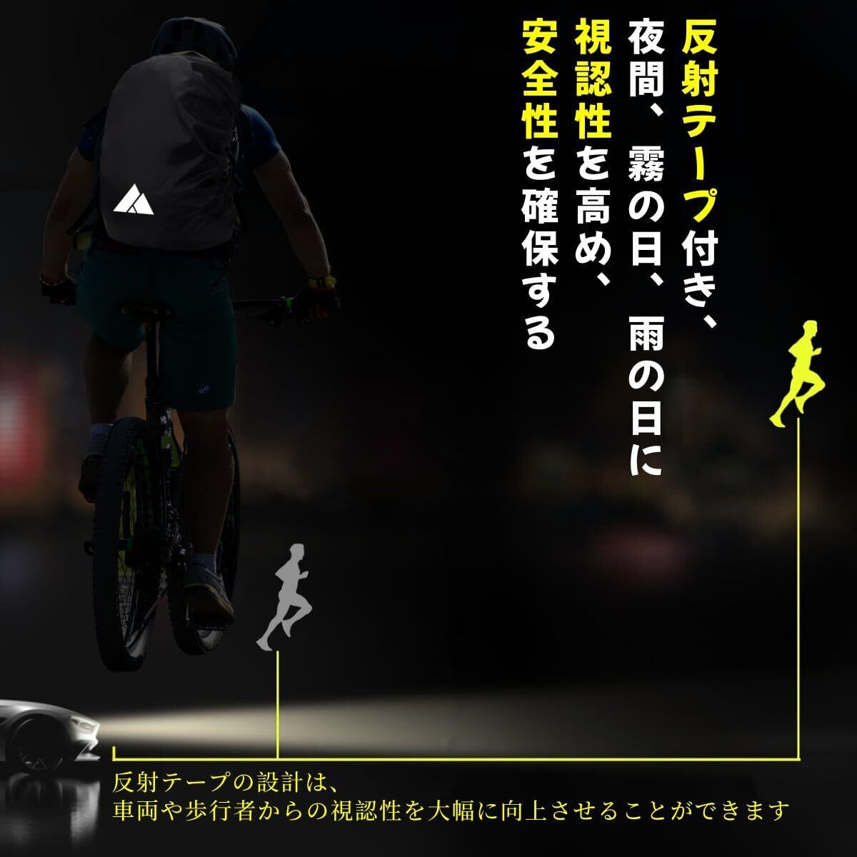 【反射材付き·安全確保】このバックカバーは厚い反射テープを採用しており、可視度の悪いところでも強い存在感を持っており、自身の存在を相手に知らせる防犯にもなり、なにより自身の身の安全を守ります。
