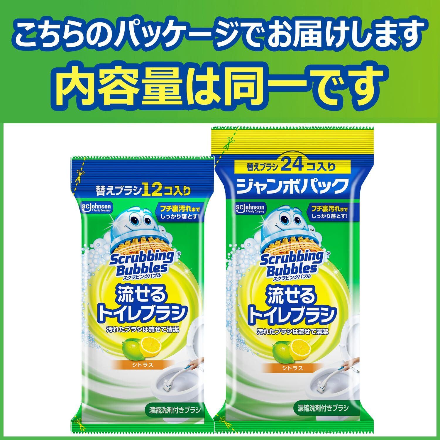 スクラビングバブル 流せるトイレブラシ シトラスの香り 付け替え用 (36個) トイレ洗剤 黒ズミ トイレ掃除 ブラシ 使い捨て 洗剤 まとめ買い