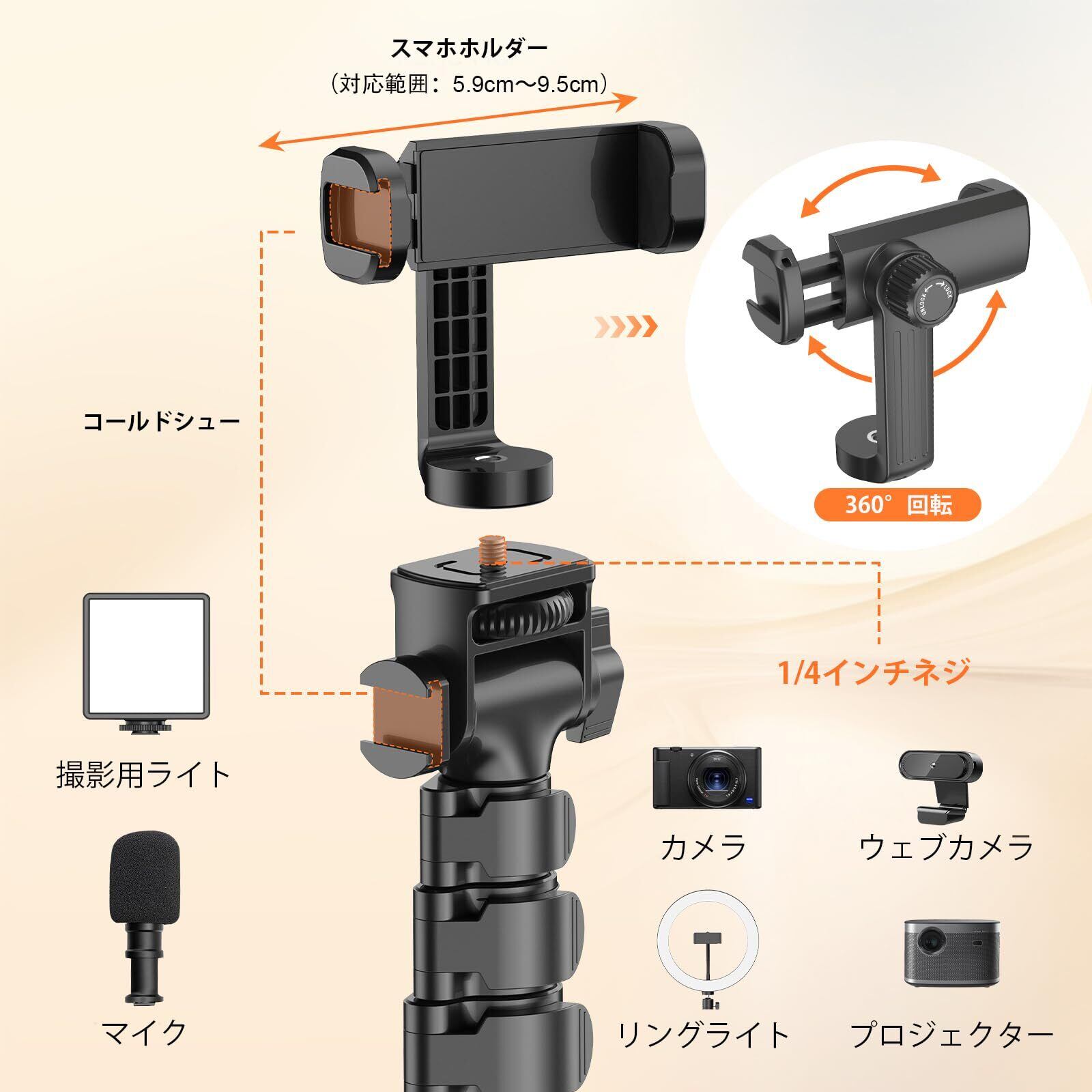 幅広い交換性: スマホホルダーの挟み幅は約6~9cmで、4~7インチのほとんどのandroidスマホとiPhoneスマホに対応できます。写真撮影だけでなく、 vlogの撮影や動画の鑑賞など、様々なシーンで活躍しています。例えば、運動会、発表会、音楽祭など。