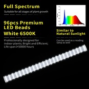 【ホワイト6500Kフルスペクトル】この植物ライトは屋内植物のために特別に設計されています。6500Kの明るい光を放つ96個の高品質LEDビーズが丁寧に埋め込まれており、自然光に似た光を提供します. 植物の成長の全段階に適しています.寿命は50,000時間以上で、長持ちするように設計されています。さらに、読書灯として使用可能で、屋内空間に多用途な追加機能を持たせています.