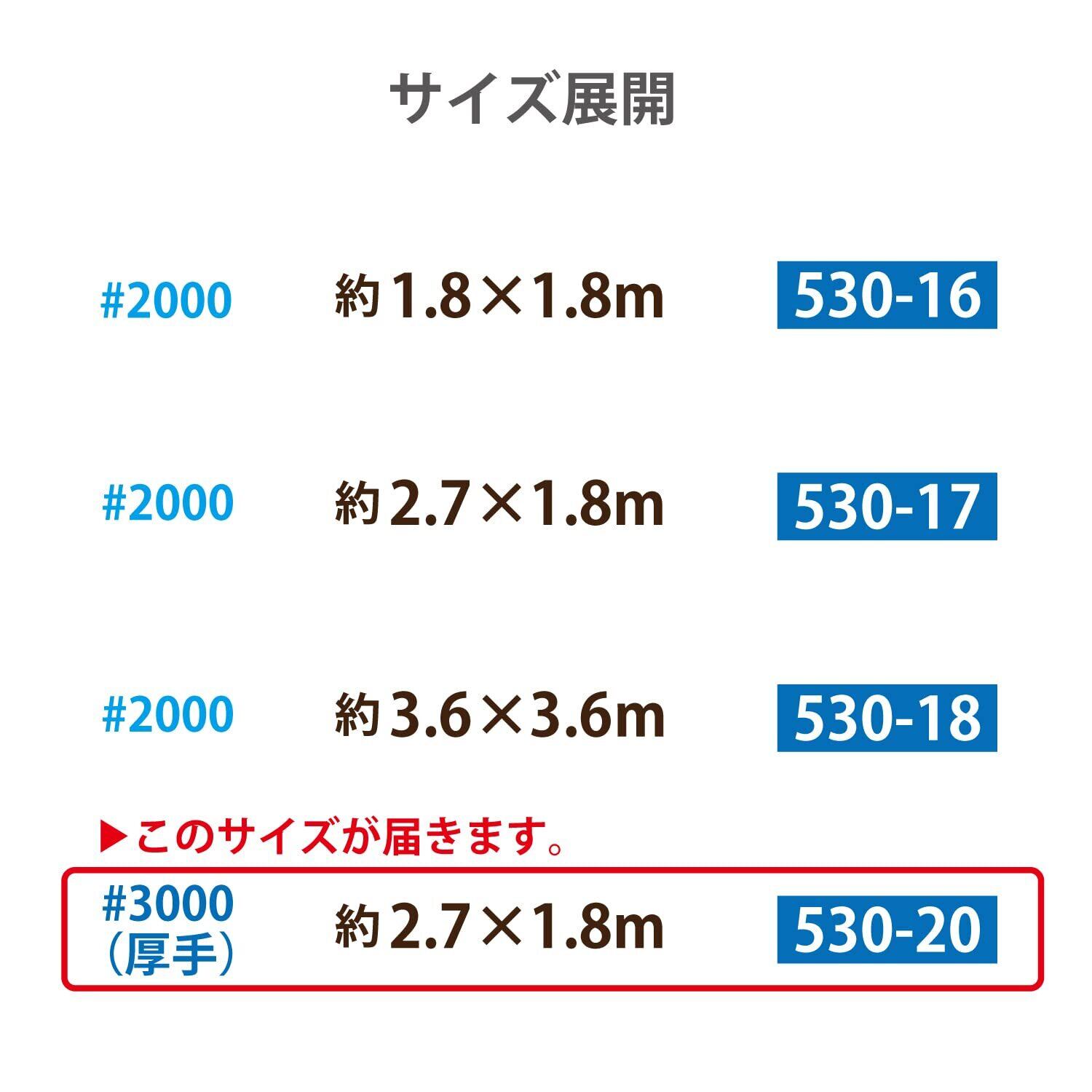【商品仕様】:規格サイズ/1.8×2.7m(仕上がりサイズ/約1.7×2.5m)、カラー/ブルー、内容/1枚、使用目安/約3畳サイズ・対応人数:大人約4~6人、材質/ポリエチレン(再生材不使用)