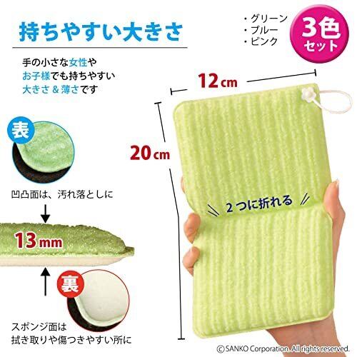 Sanko サンコー お風呂 スポンジ 浴槽 掃除 お得用 3色入 水だけでも汚れが落とせる特殊繊維 バスピカピカ びっくりフレッシュ 日本製 BF-53