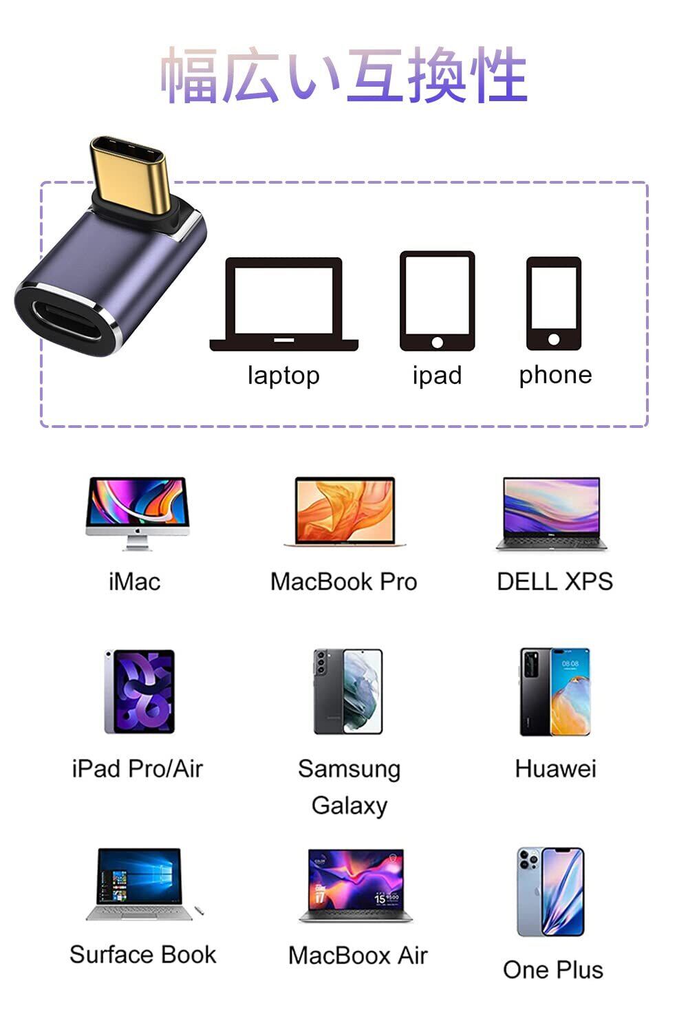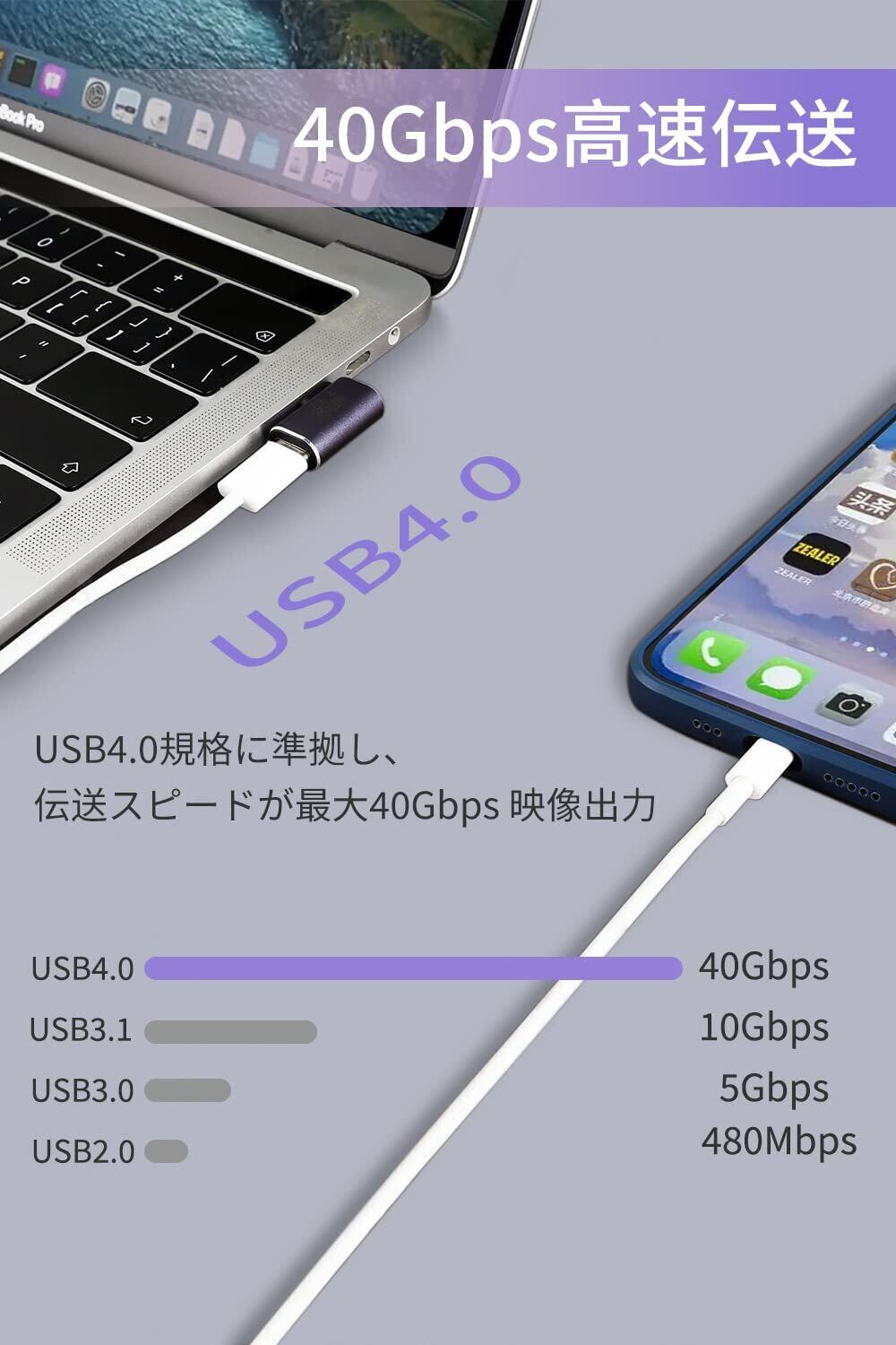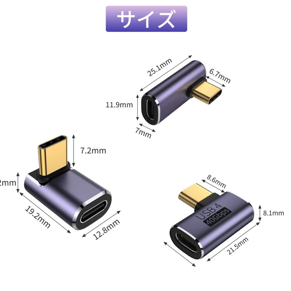 YFFSFDC USB4.0 Type C 変換 アダプター 左右 90° 曲げ3種類セット PD 100W/5A急速充電 40Gbps高速データ転送 8K@60Hz映像出力 L字 L型 タイプc type-c 90度 オス メス USB C コネクター スリムデザイン Thunderbolt 3、Mac Book 、Nintendo Switch、Sam sungなどのType Cデバイスに対応