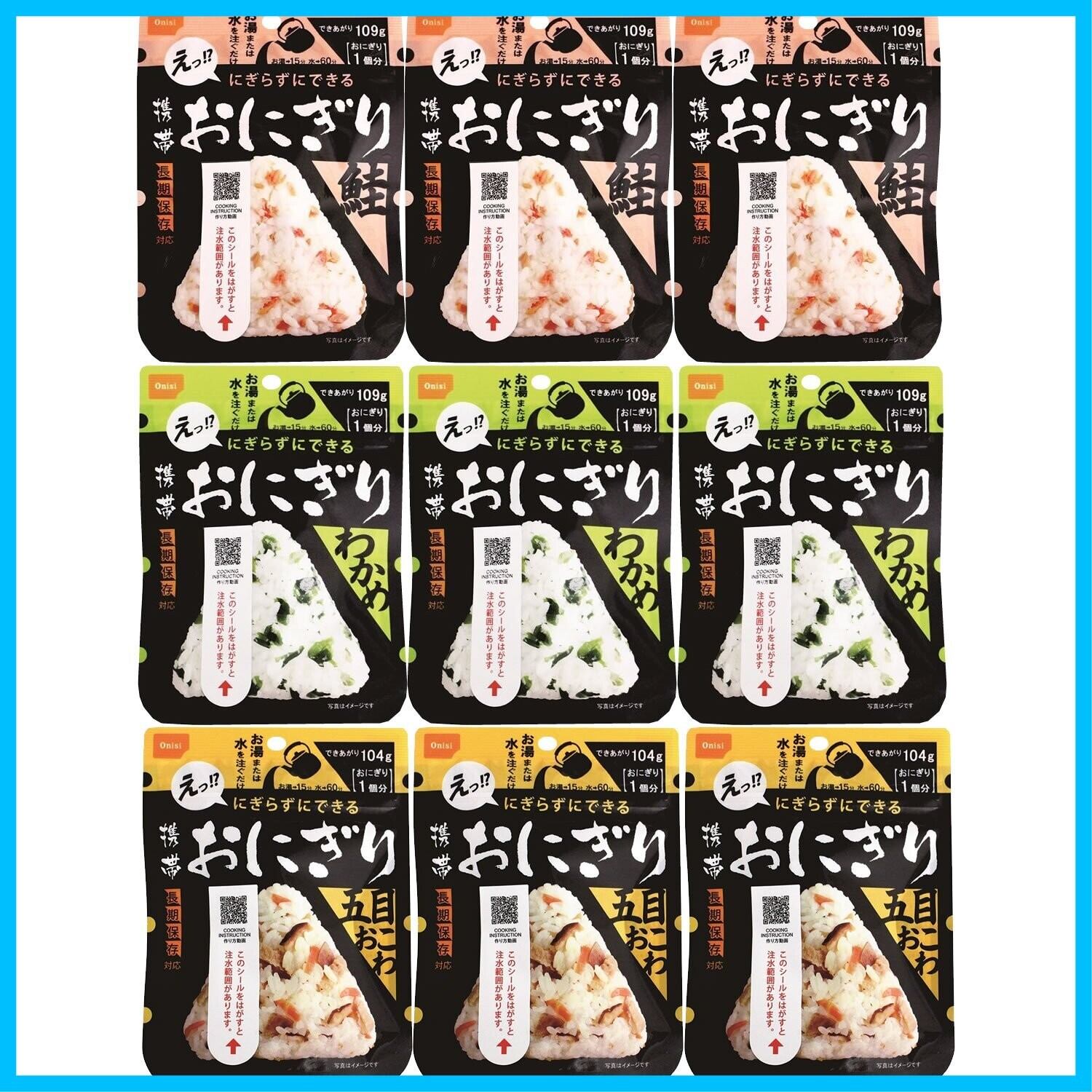尾西食品 携帯おにぎり 鮭・五目おこわ・わかめ うるち米 3袋×3種 (非常食・保存食)