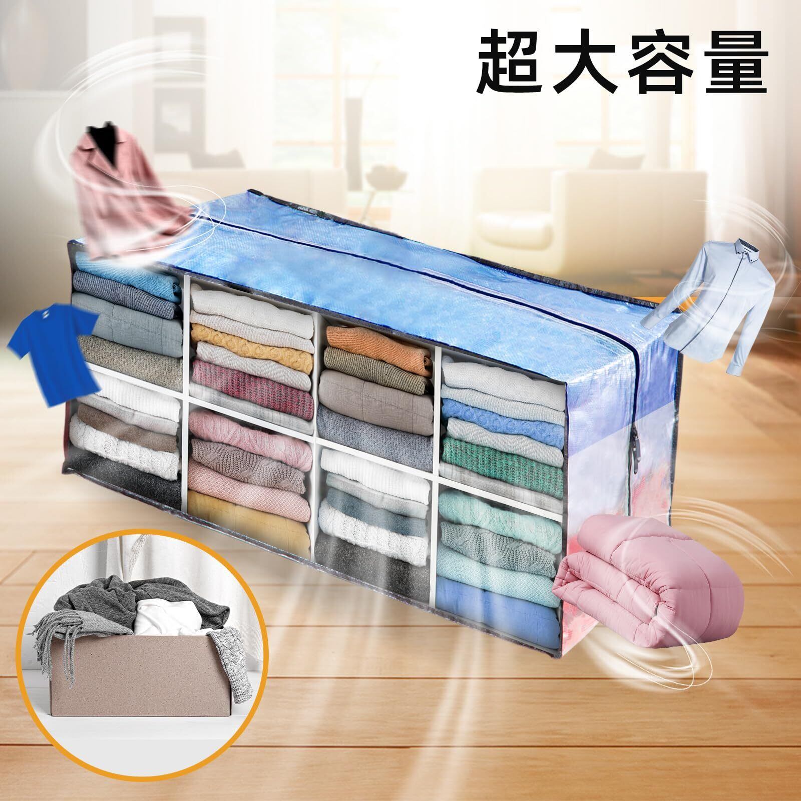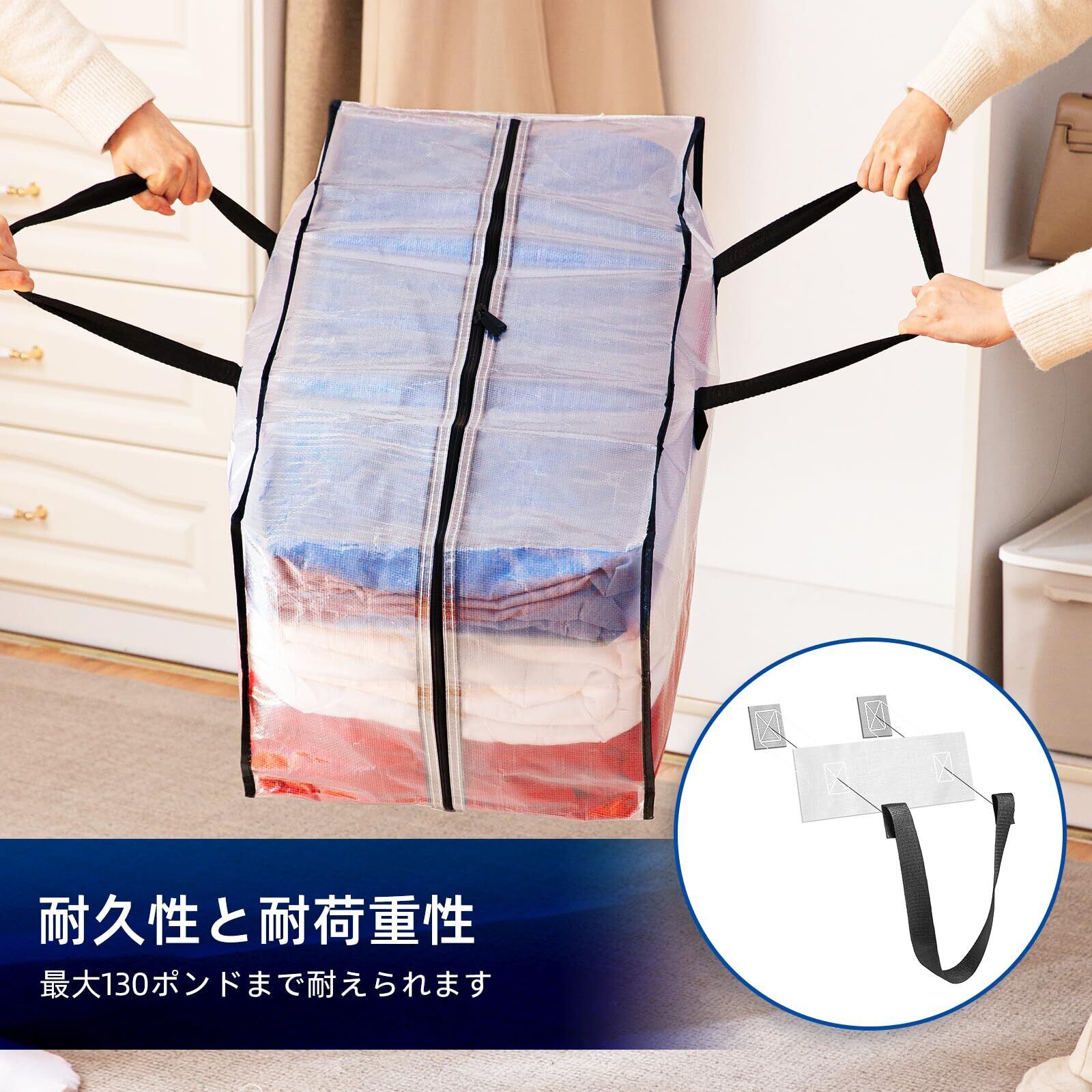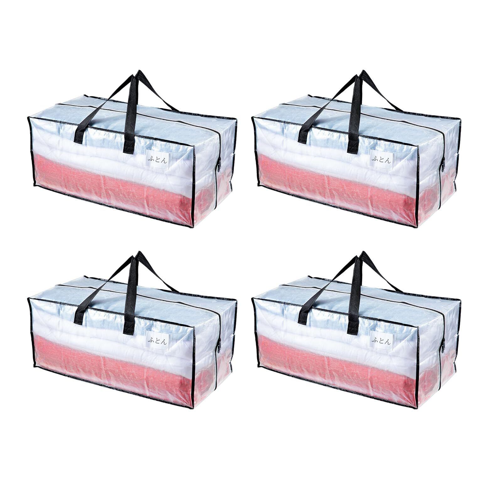 TAILI 大型収納袋 引越しバッグ 布団収納カバン 特大容量 ビッグバッグ 寝具ケース 持ち手付き 洋服 衣装ケース 羽毛ふとん 防塵防水 折りたたみ式 省スペース 引っ越し 背負える キャンプ 旅行 耐荷重 透明 4個セット