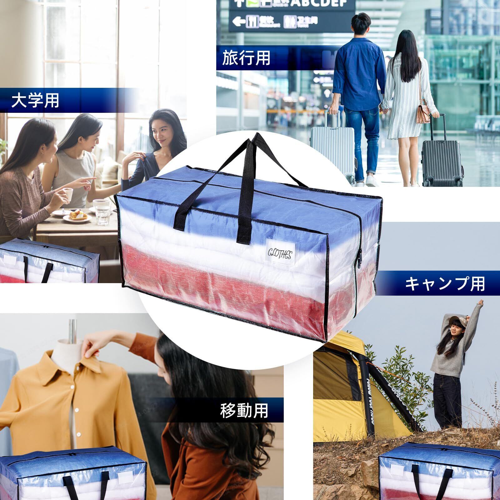 様々なシーンで大活躍:4枚1セットで、様々なシーンで使える大容量の収納バッグです。 モバイル、旅行キャンプ、省スペースに最適です。 大学の移動日、新居への引越し、旅行、キャンプ用品などに最適です。大きな収納バッグは移動に適しているだけでなく、他の保管や買い物のニーズにも対応でき、より柔軟で便利です