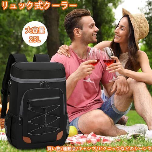 クーラーボックス 保冷リュック リュック式クーラー 大容量 25L 小型 保冷バック クーラーバック 折りたたみ収納 保冷 防水 軽量 買い物 キャンプ レジャー ピクニックお花見 運動会 (ブラック)