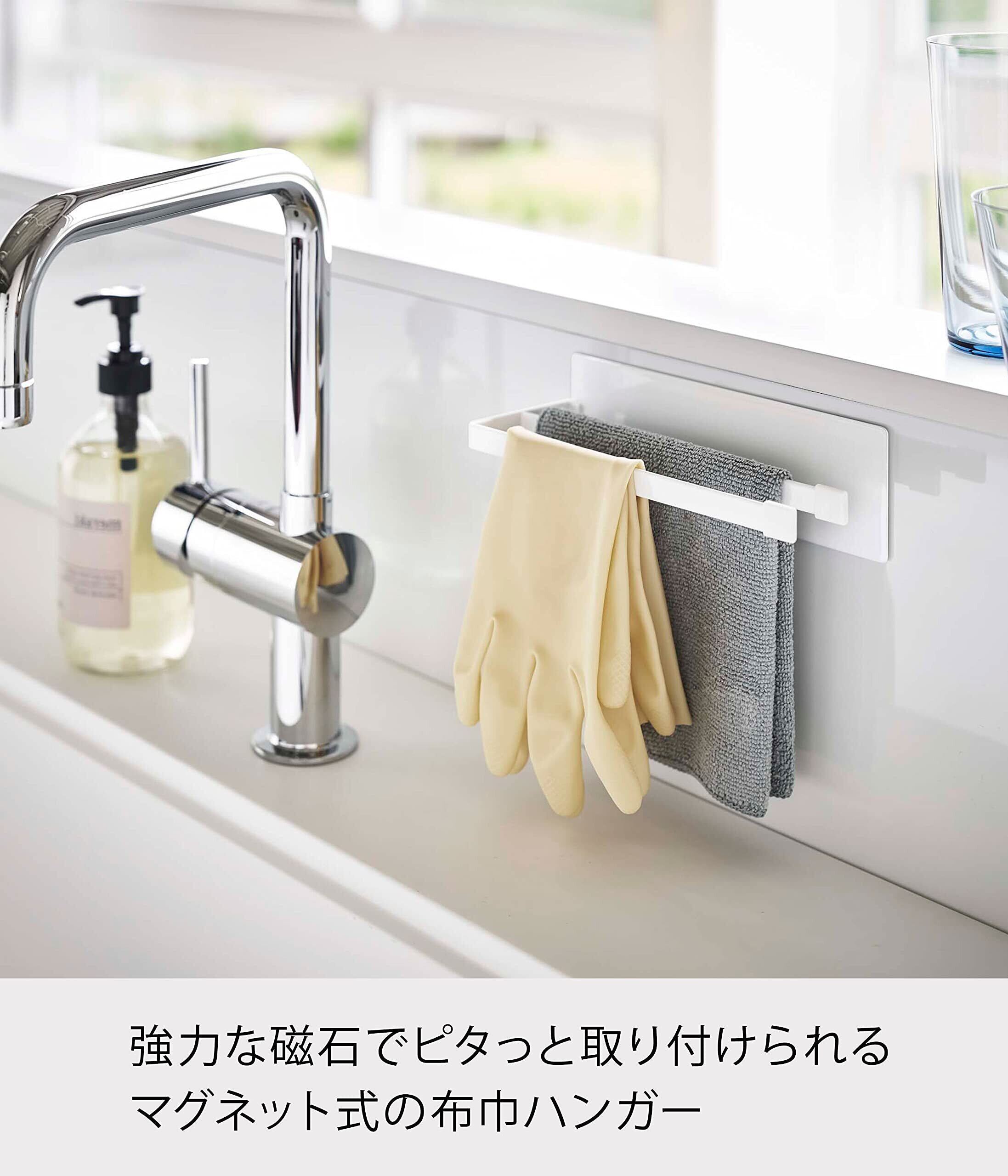 マグネットが付くスチール壁面に簡単取り付けの布巾ハンガー