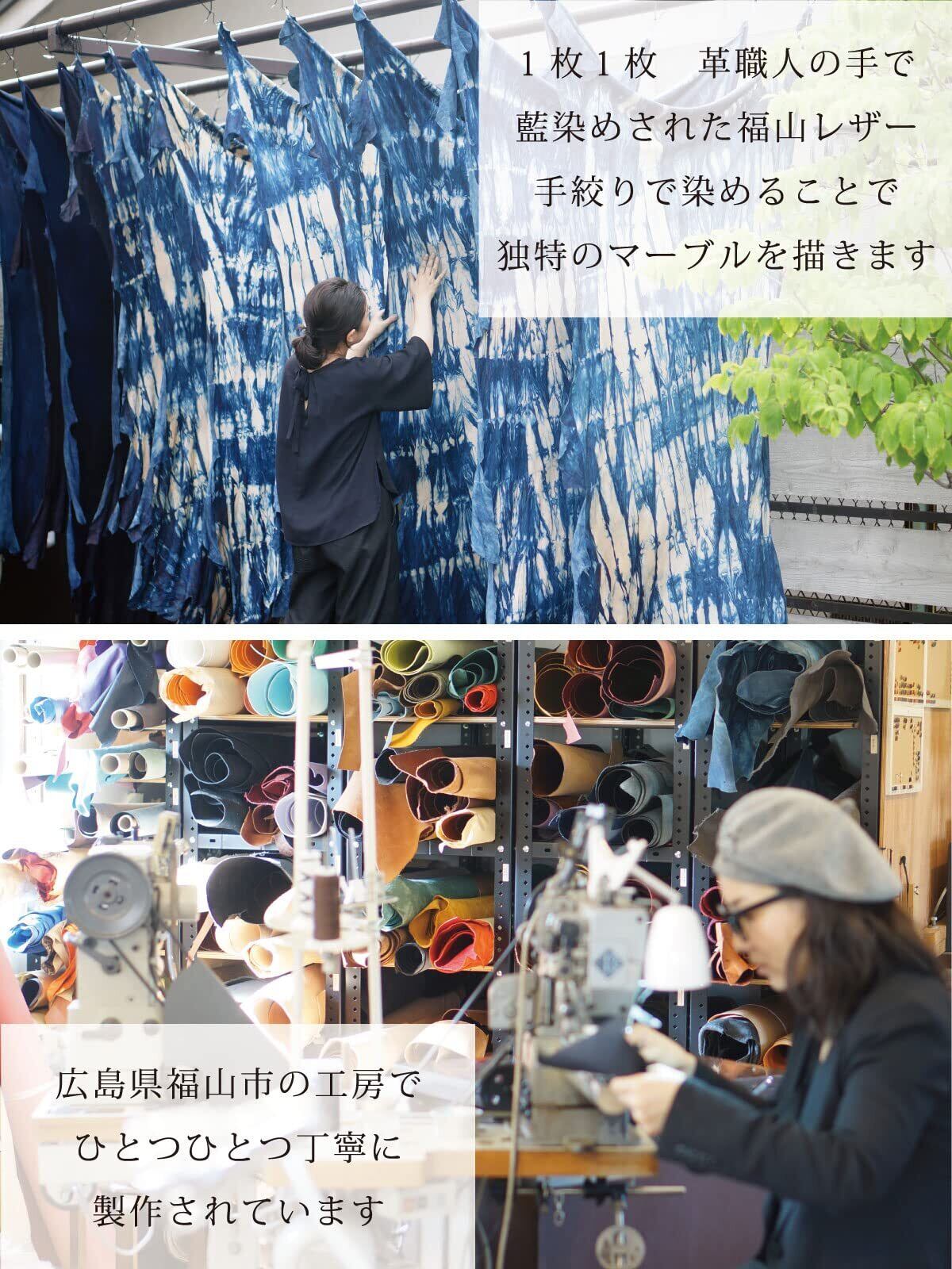 カラー:薄藍 ※手絞り・手染めの革をランダムに使用しているため、色・柄などは写真とは異なります。予めご了承ください。