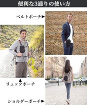 ダブルポケットでスマートフォンと小物を分けて収納できます。フロントポケットにもスマホ収納可能。