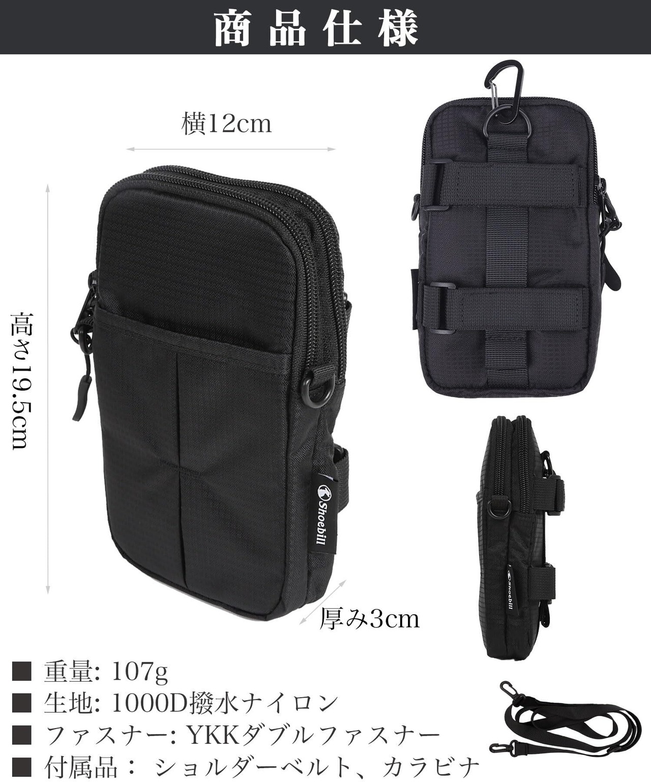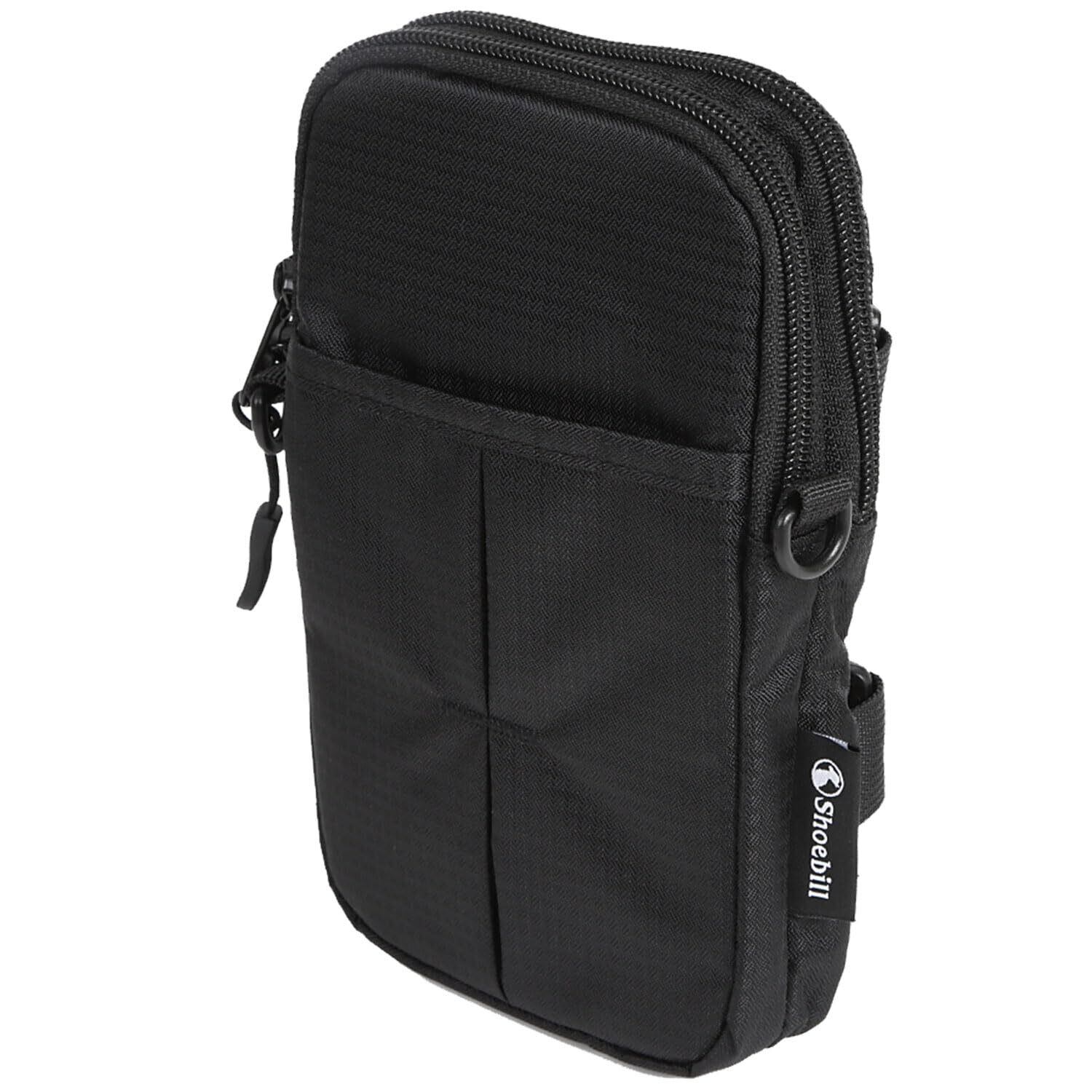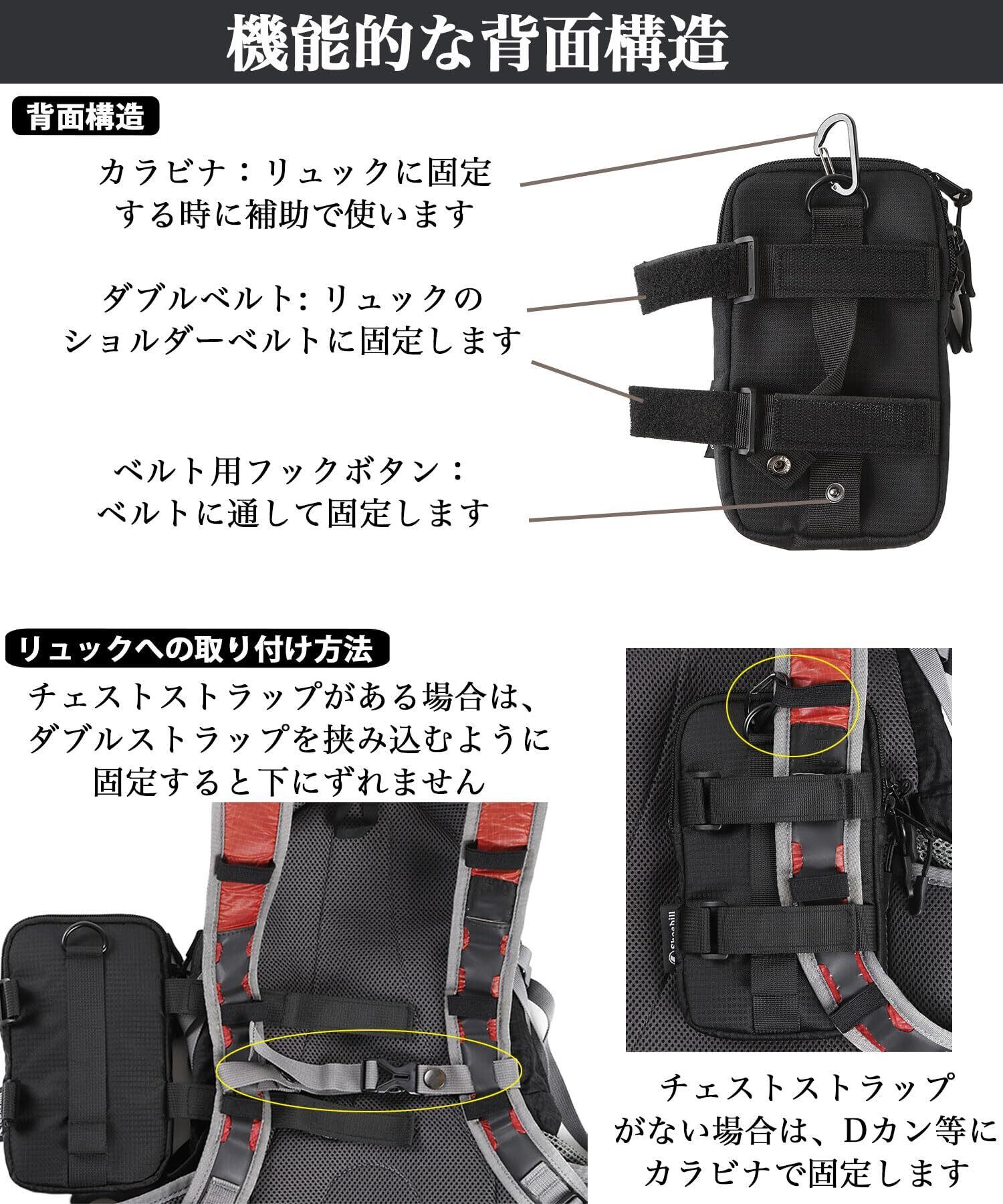 Shoebill スマホポーチ リュック 取り付け 2台 スマホショルダー ベルトポーチ アウトドアポーチ (ブラック イヤホン穴なし)
