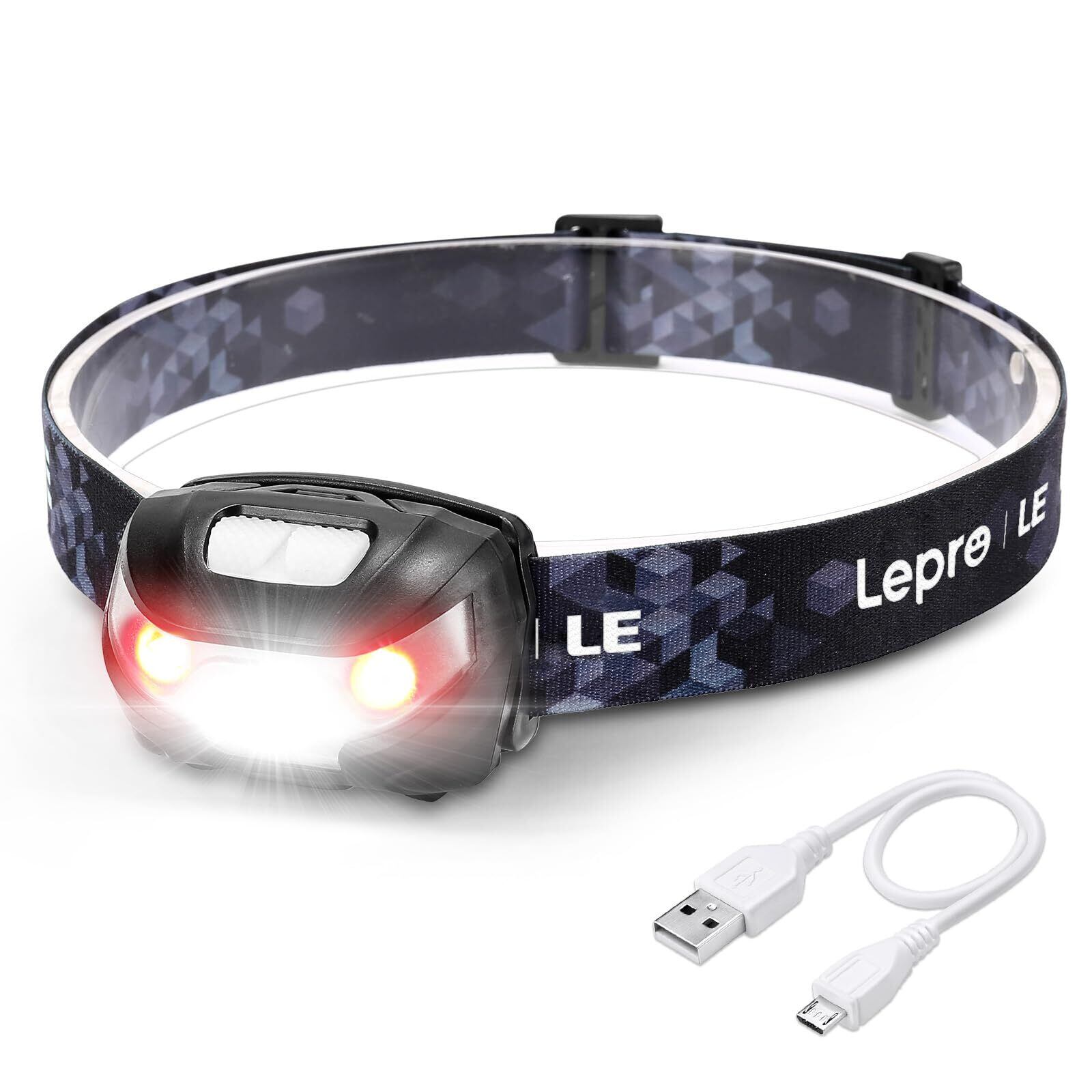 Lepro ヘッドライト 充電式 ledヘッドライト 釣り ヘッドランプ 登山 USB-C充電 白&赤 ledライト 高輝度【明るさ150ルーメン/5つ点灯モード/3時間満充電/実用点灯30時間】 防水 照射角度調整可 軽量 キャンプ 散歩 アウトドア 災害 停電用