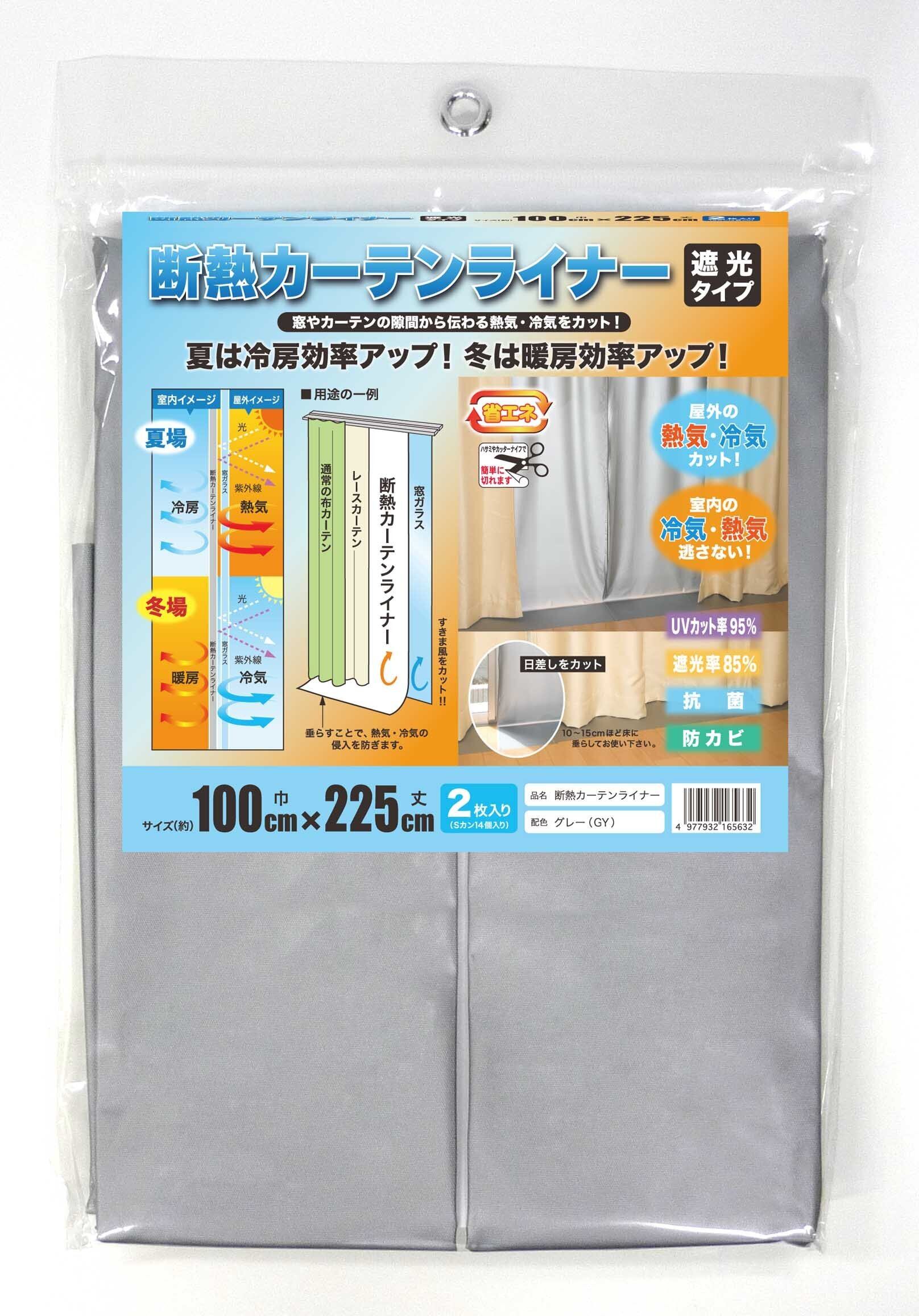 明和グラビア 冷気を防ぐ 窓 冷暖房効率UP カーテン 省エネ 節電 遮光 UVカット 取り付け簡単 グレー 断熱カーテンライナー 100cm×225cm 2枚入