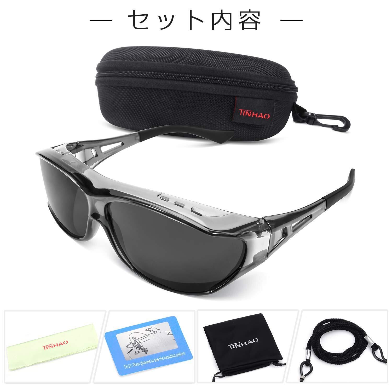 [TINHAO] 偏光 オーバーグラス オーバーサングラス 偏光サングラス メガネの上からかけられるオーバーグラス レンズ曲がる 偏光グラス UVカット 紫外線カット 反射・眩しい光防止 ドライブ ゴルフ 釣り アウトドア スポーツ偏光サングラス