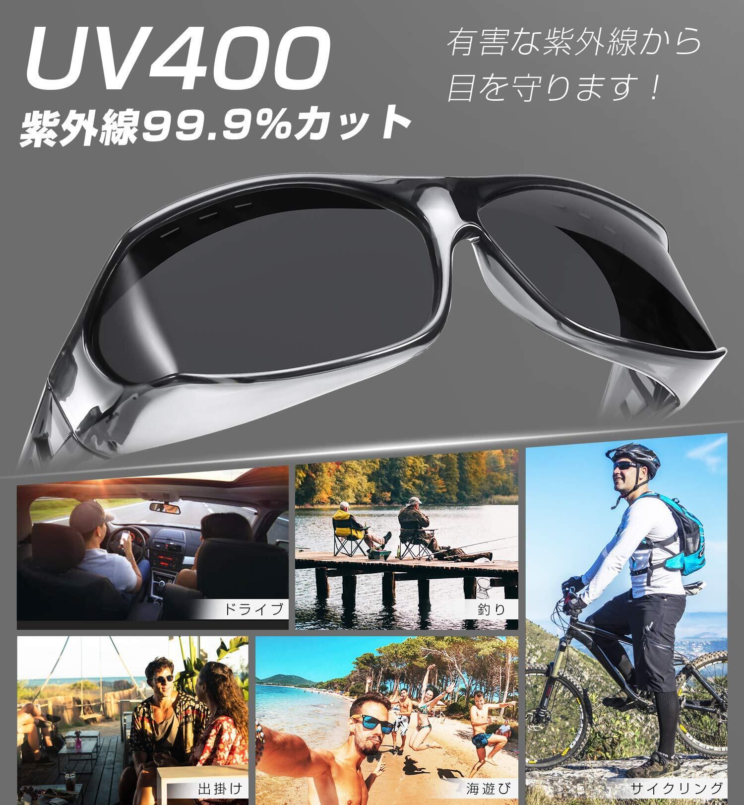 【偏光レンズ サングラス】:高品質な偏光レンズを採用し、眩しさを効果的にカット、反射したギラつくも遮断でき、クリアな視界をキープする優れた偏光オーバーサングラスです。