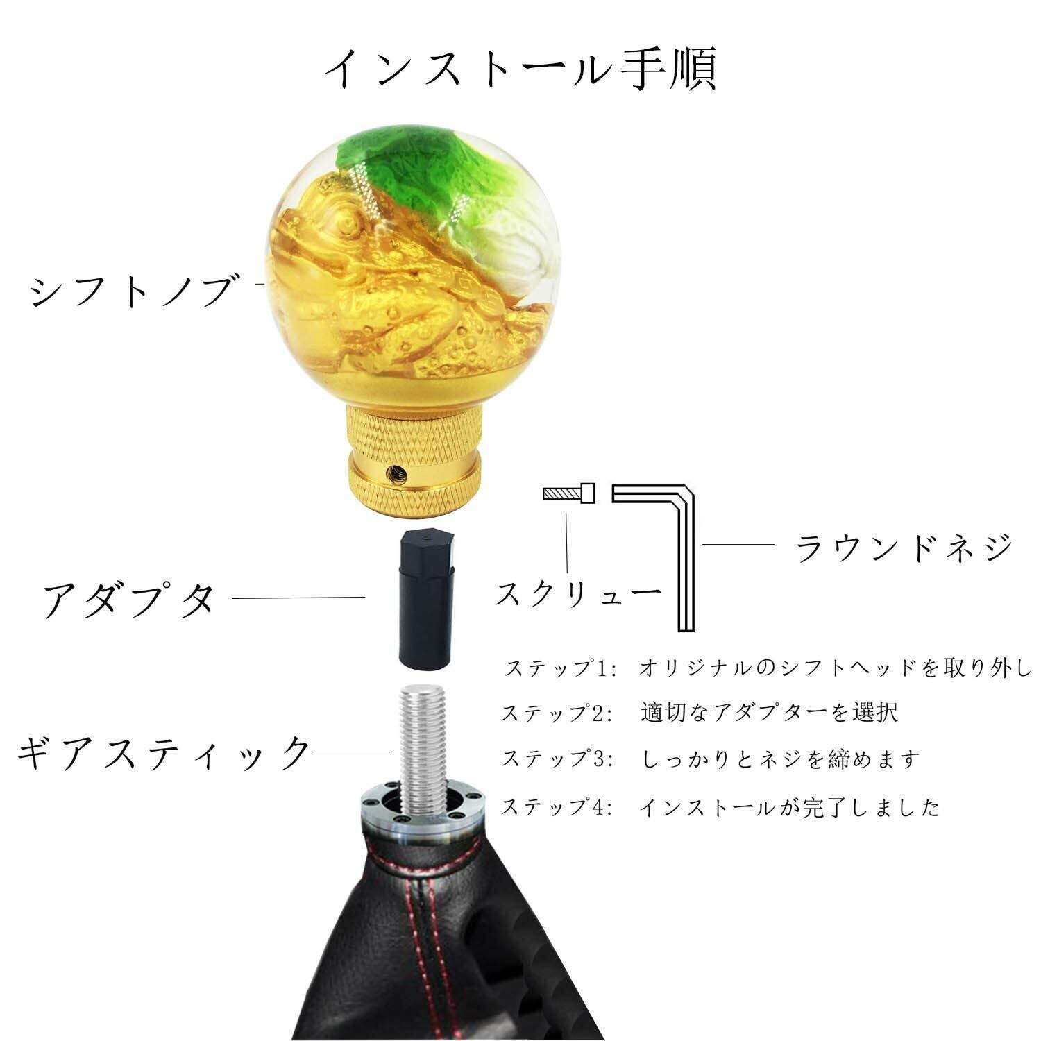 3つ取付付属品:シフトノブには3つのユニバーサルアダプターがあり、直径8mmから12mmのギアスティックに適用できます。 (購入前にギアスティックの直径を確認してください。元のギアシフトノブを交換できることを確認してください。)
