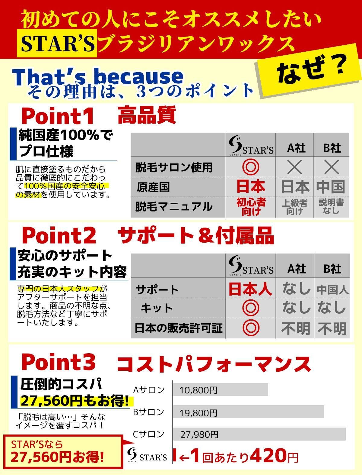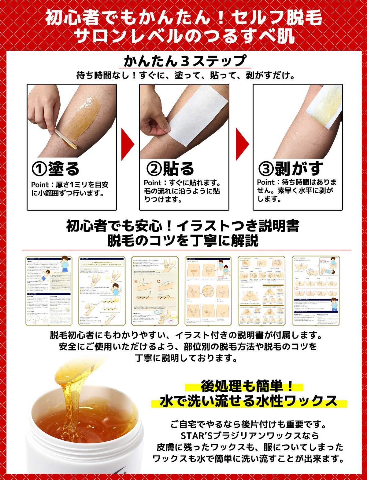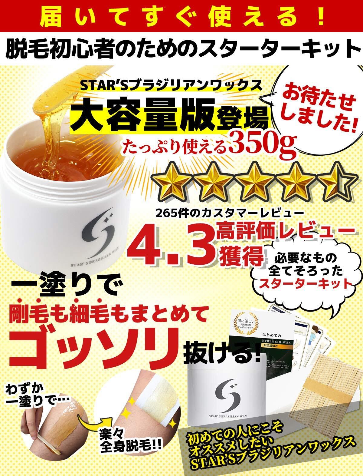 STAR'S ブラジリアンワックス メンズ用 350g 専門サロンのブラジリアンワックス脱毛 VIO 全身脱毛専用 純国産無添加 スターターキット