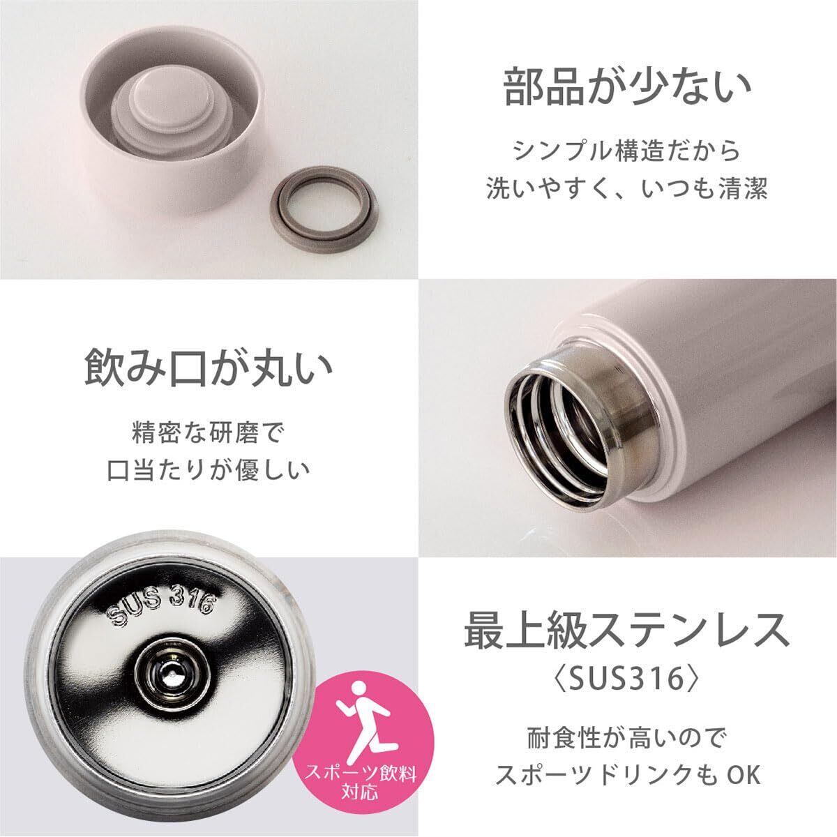 超軽量スリムタイプのスクリューマグボトル!サビに強いSUS316ステンレス鋼使用でスポーツドリンク対応。汚れやニオイが付きにくい、クリーンミラー加工。部品点数がすくなくお手入れがラク!