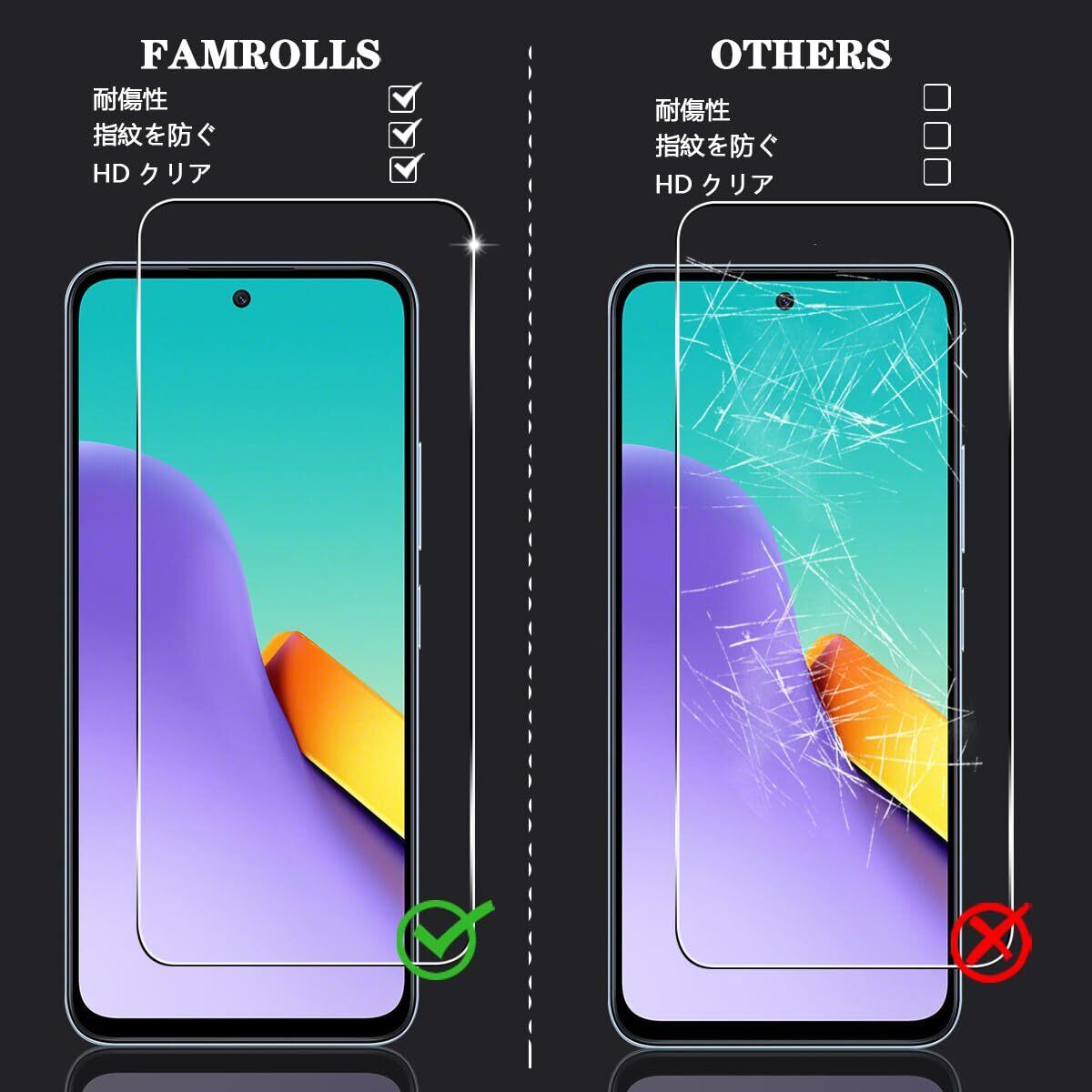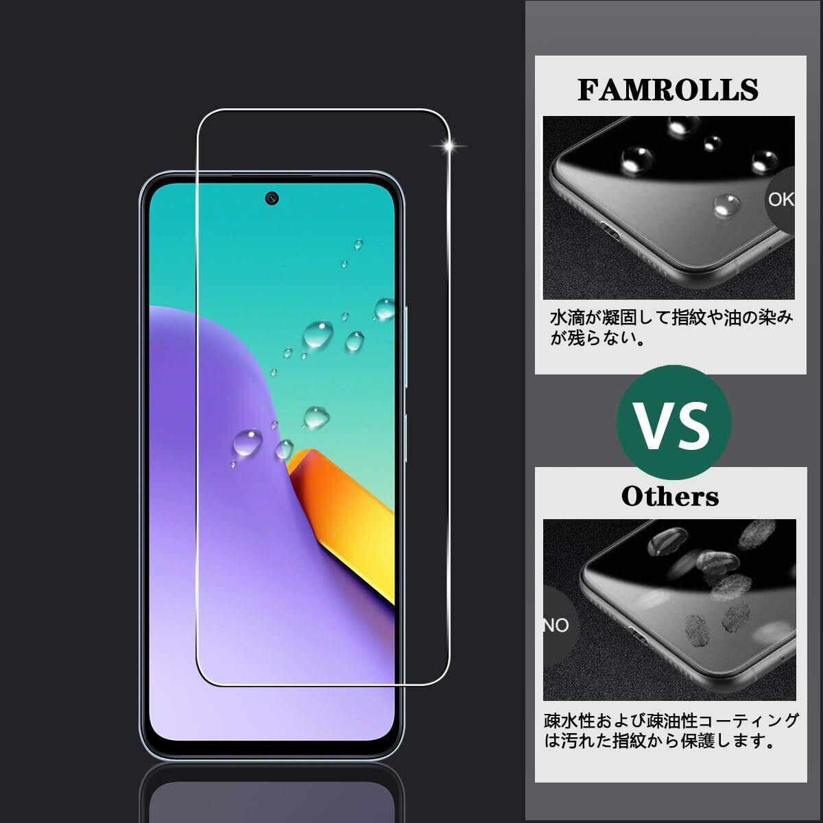 【対応機種】 シャオミ レッドミー 12 6.8インチ 専用。素材に日本製の旭硝子を採用。【四枚セット】 2枚 用 Xiaomi Redmi 12 5G 強化ガラスフィルム+ 2枚カメラ保護フィルム。【FAMROLLS正規品】スマホの周辺アクセサリーを長年手掛けるFAMROLLSメーカーの人気スマホガラスフィルムです。安心してご注文ください。