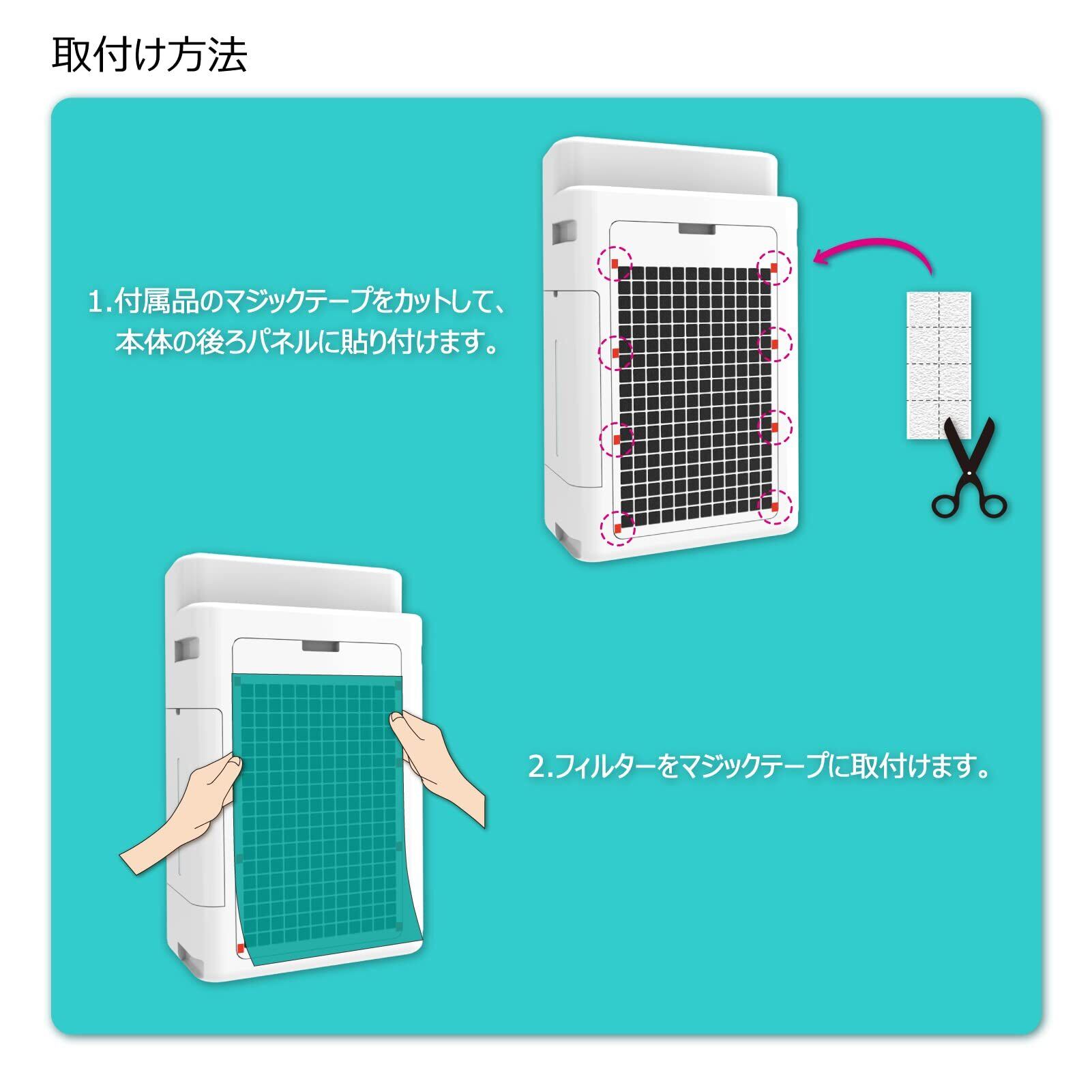 【定期的に取替】該当フィルターはシャープ空気清浄機の後ろパネルに張り付ける使い捨てるタイプの消耗品です。フィルター一枚で後ろパネルのお掃除の手間が省き、吸込み口からお部屋の埃や粉じん等もある程度にフィルターできます。ご利用の環境と条件によって、適当な頻度で取り替えしてください。交換目安:約一か月
