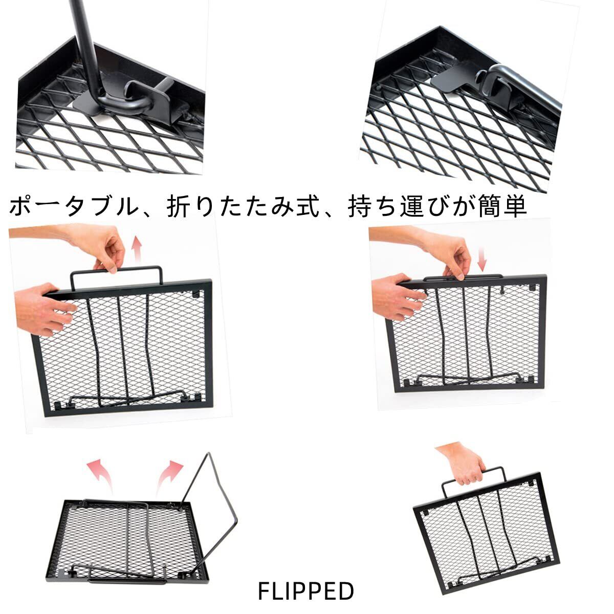 FLIPPED メッシュテーブル スチールテーブル 折りたたみ アウトドア キャンプ用品 専用キャリーバッグ付 43×32×26cm Black