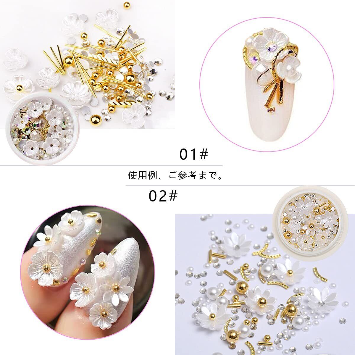 この季節にぴったりしたアイテムネイルパーツです。3Dフラワー、パール、平底ラインストーンなど組み合わせしたネイルパーツセットです。容量:13g/個「9色・9個入り」;ケースサイズ4*1.5cm。