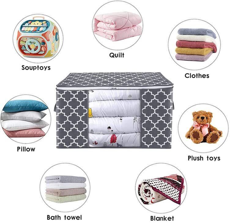 ️【高品質素材】3パックの高品質材料収納ケースです。 毛布の保存袋は、高品質の無味、通気の不織布で作られ、透明な窓が付いており、すぐに保存物を識別できます。 この生地はあなたの服、布団、毛布にも優しいです。 その丈夫な生地は、魅力的なパターンをデザインし、あなたのホームデコレーションをより一層引き立てます。