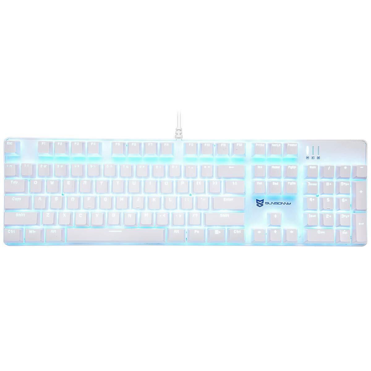 Merdia メカニカル式ゲーミングキーボード 全104キーボード US配列 USB有線キーボード LEDバックライト付き (茶軸-ホワイト)