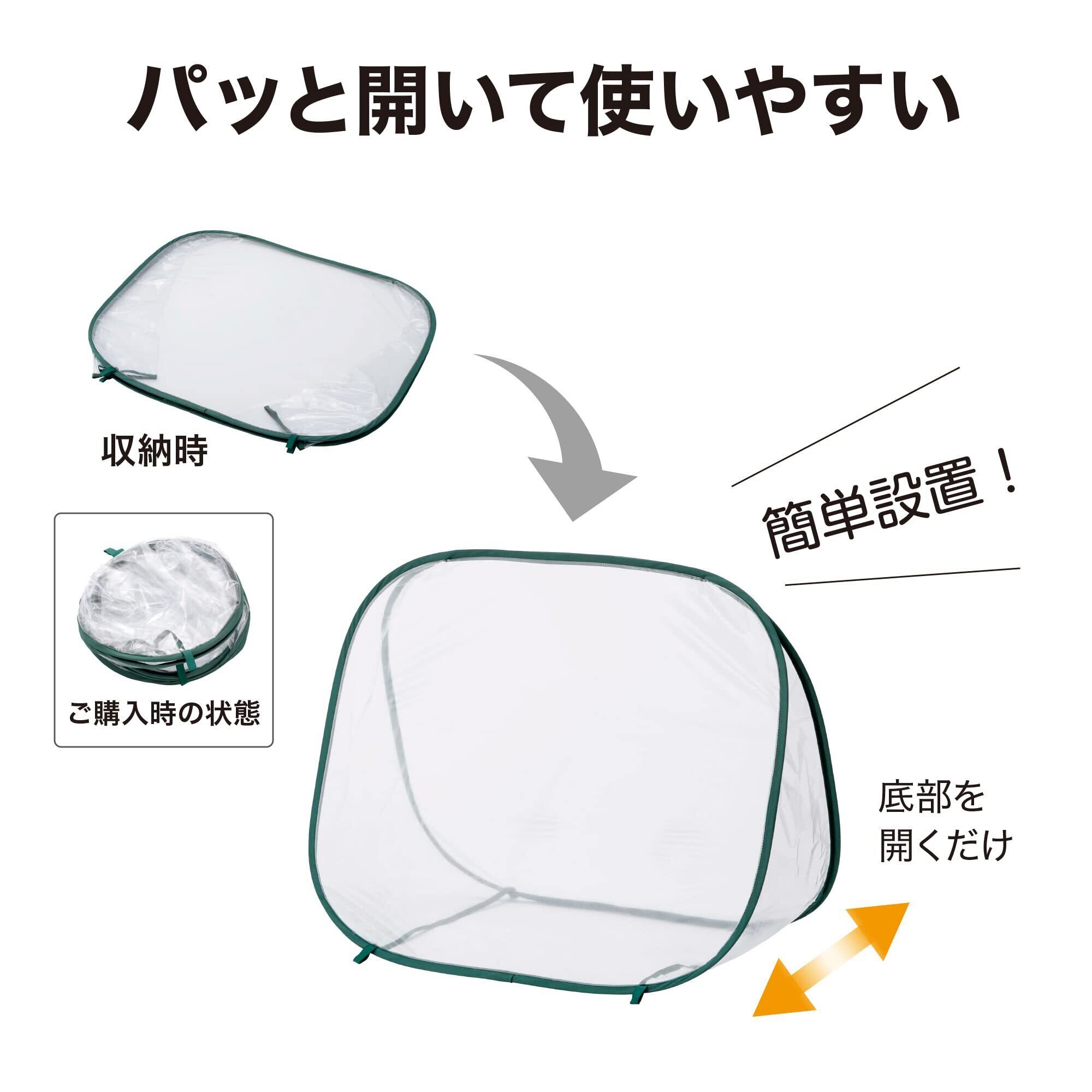 寒さや霜から大切な植物を守る。 必要なときにパッと開いて簡単設置。設置も収納もしやすく、扱いやすい。