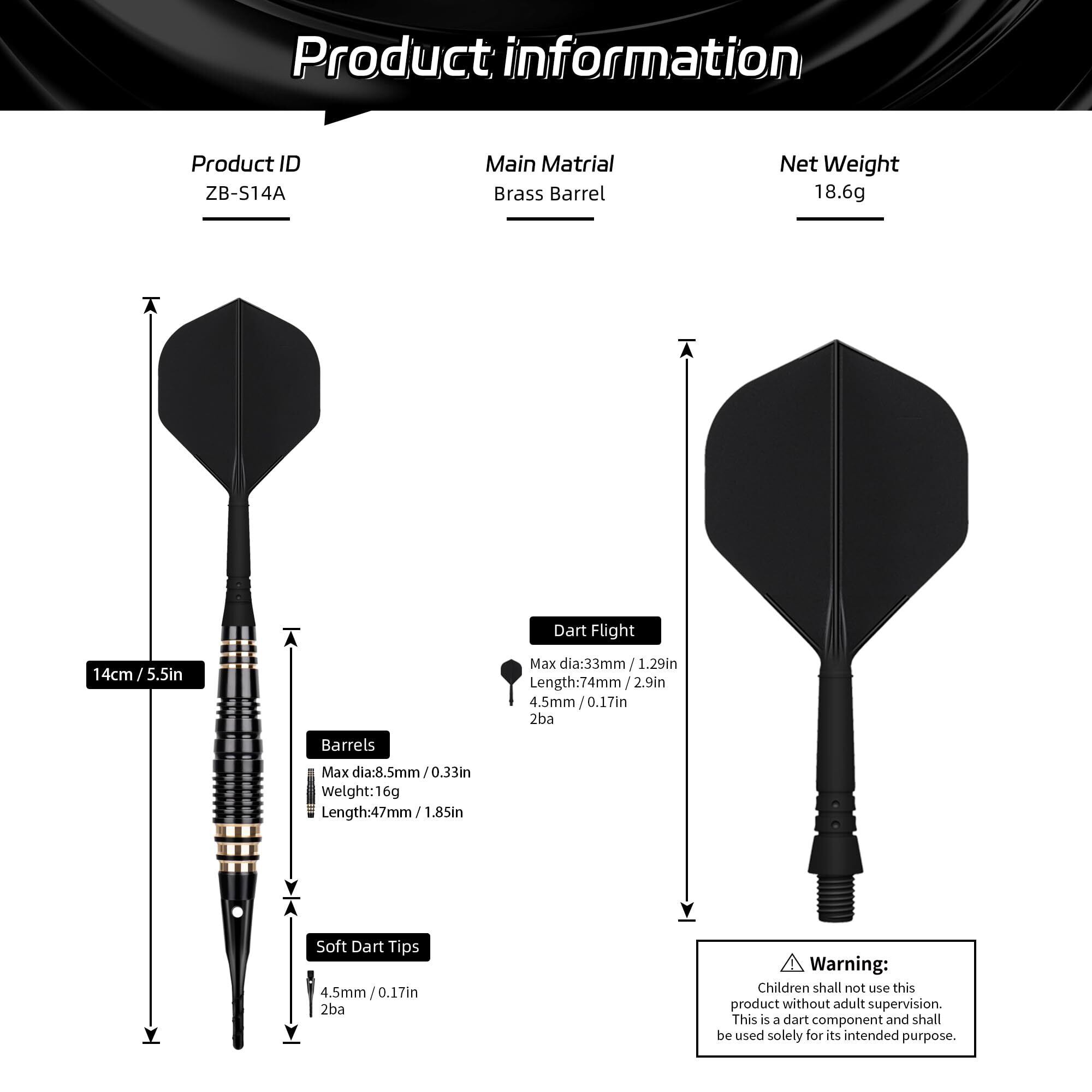 Cyeelife プロソフトチップダーツセット18 g, 追加のダーツチップとギフト収納ボックスが30個付いています,ダーツプラスティックチップ