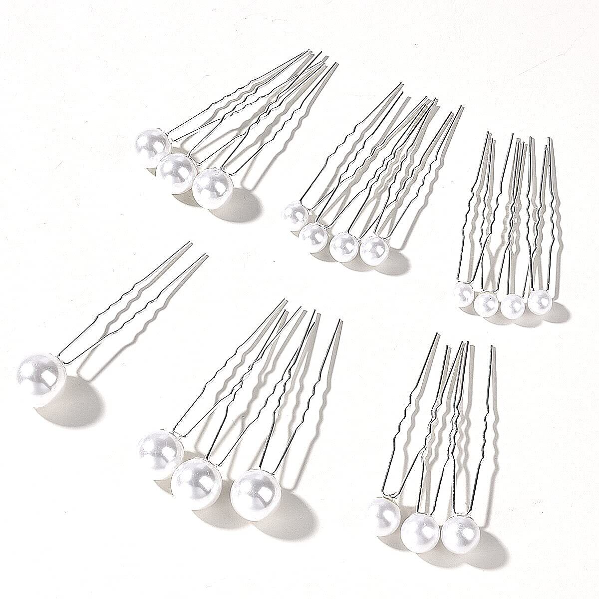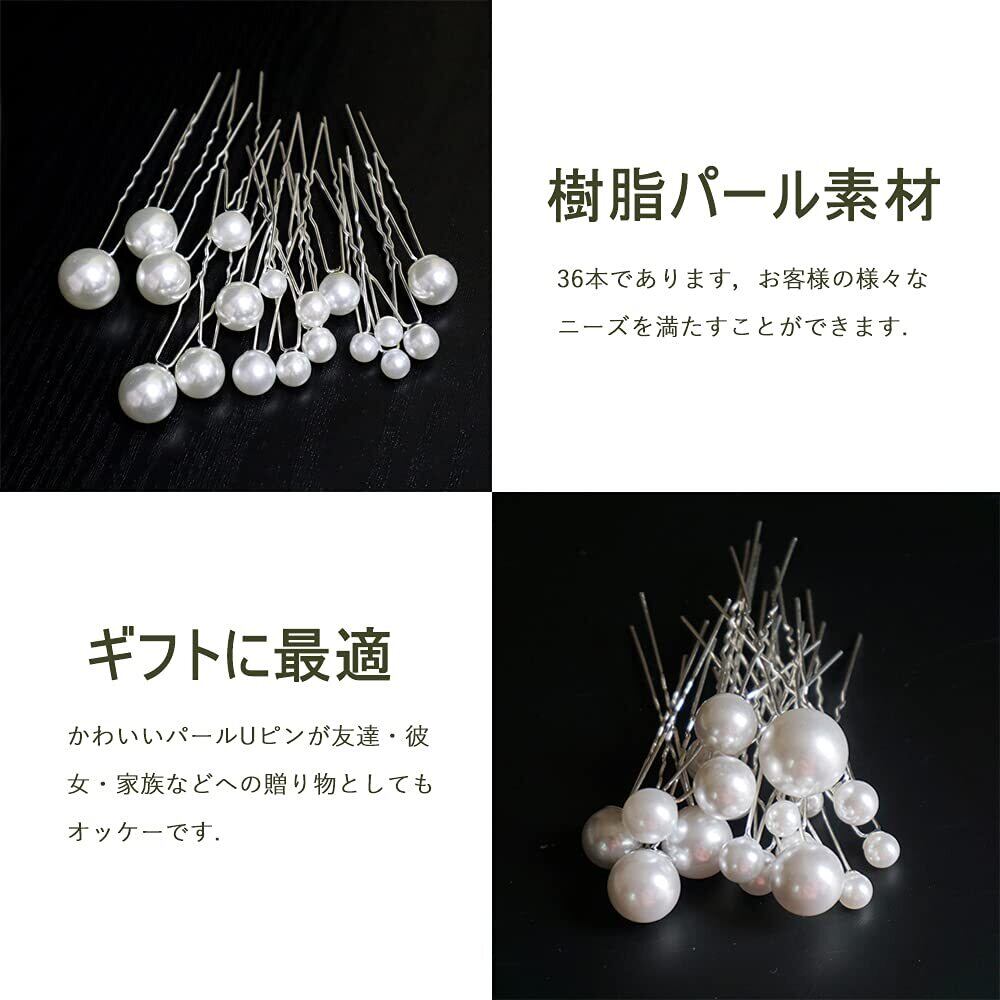 YFFSFDC Uピン ヘアピン パール 36個セット 結婚式 卒業式 入学式 髪飾り ヘッドドレス 和装 アレンジ 和装 撮影 (シルバー)