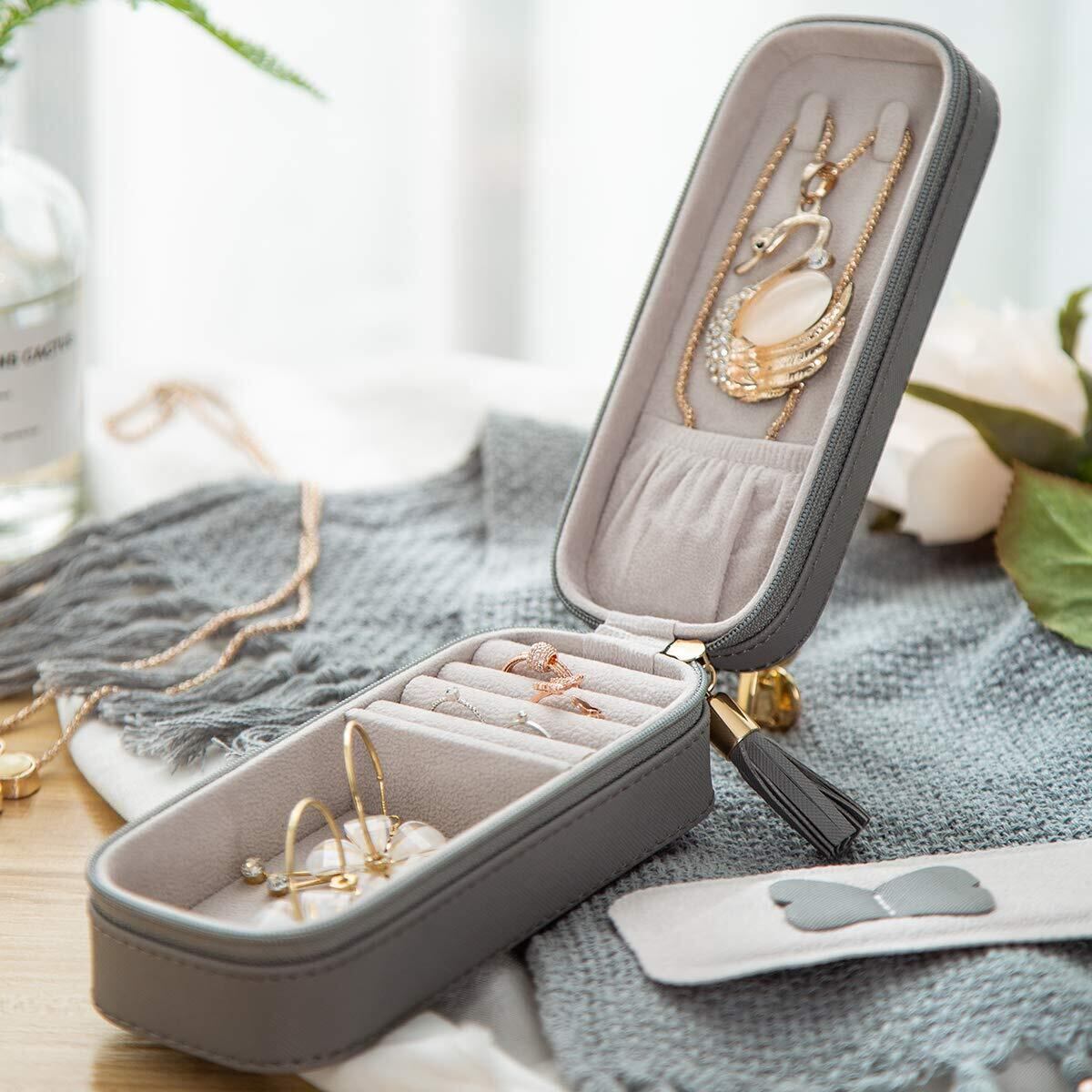 小さな宝石箱トラベルジュエリーボックスポータブルジュエリーボックスMINIジュエリーボックスジュエリーストレージボックスレザージュエリーボックス (グレー)