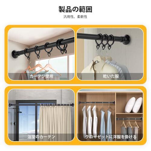 【主な仕様】:強力 つっぱり棒2.4m より厚い より強い負荷の突っ張り棒240cm 、18個の無料カーテンリング含む,