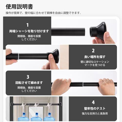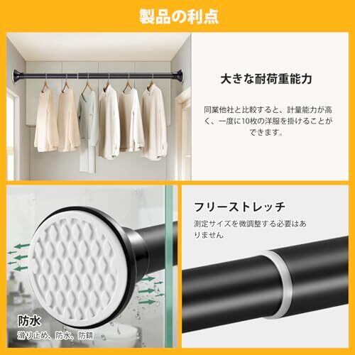 【優れた荷重能力】高品質な304ステンレス素材で製造されたつっぱり棒は強い荷重(最大15kg-45KG)に耐えられ、重い洗濯物干しや厚地のカーテンも楽々吊るせます。そして、伸縮棒は錆びが出ない上に、カビにも強いです。(ご注意:設置された長さが違うと、荷重能力は変わります。伸縮が少ない方がより荷重能力がもっとよいです)