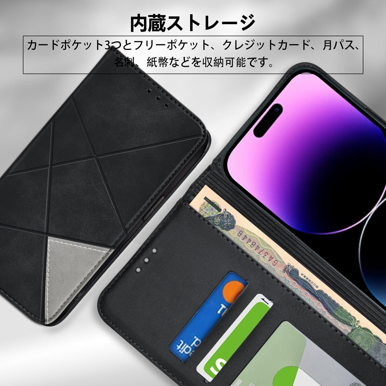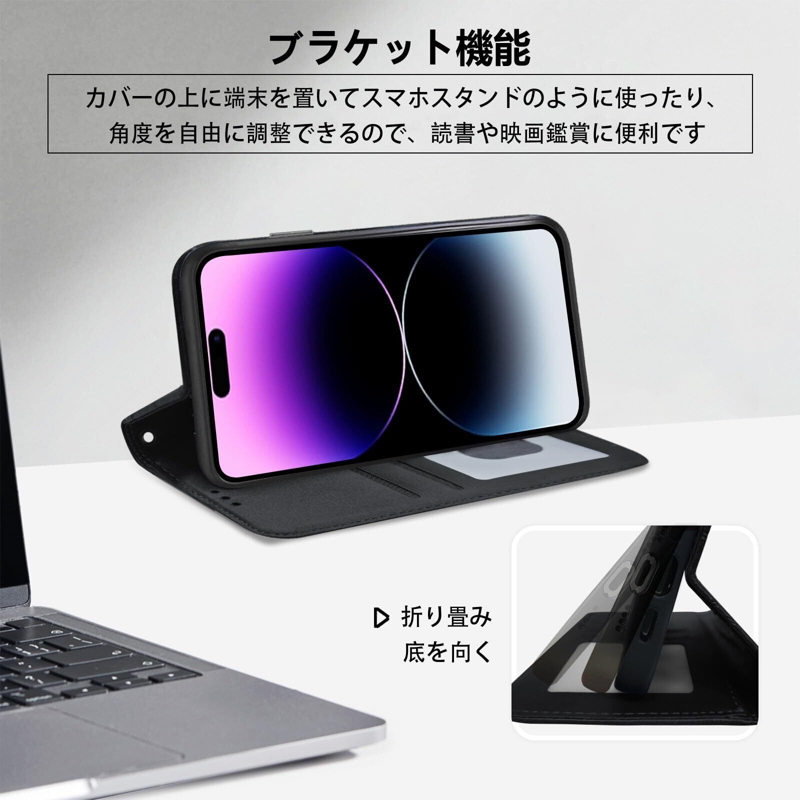 【収納機能&横置きスタンド機能】このiPhone14Pro手帳型携帯ケース内側に実用性のカード入れポケット×2、内側ポケット×1、カード類、名刺、現金入れなどを収納でき。ハウジングの側面にはマグネットが内蔵されており、留め具なし、必要な時に片手で携帯ケースを開けたり閉じたりできます、非常に便利です。携帯ケースは横置きスタンド機能を備えており、好みの角度を自由に調整することができます、いつでもどこでも映画などの娯楽番組を楽しむことができます。首や肩周りリラックス、指と腕の疲れ解消し。