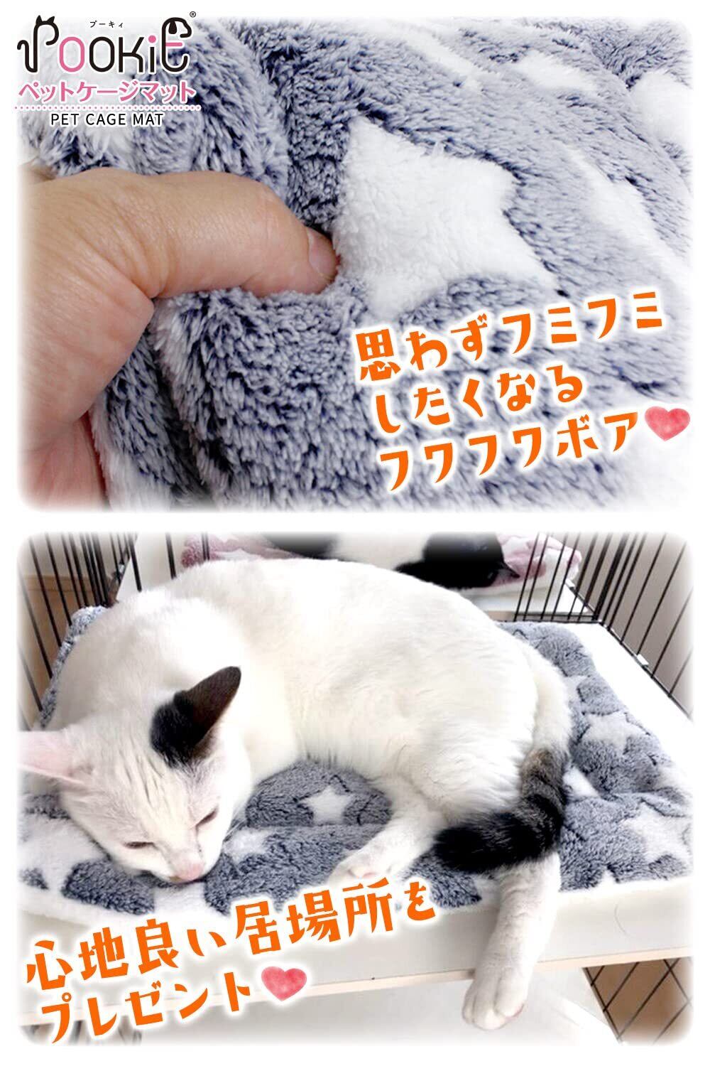 POOKIE ペット マット ケージ用 猫 ベッド 落ちない 四隅紐付き ボア あったか 柔らかい リバーシブル 洗える モフモフ ふわふわ キャットタワー ソファ (グレースター) ワンサイズ