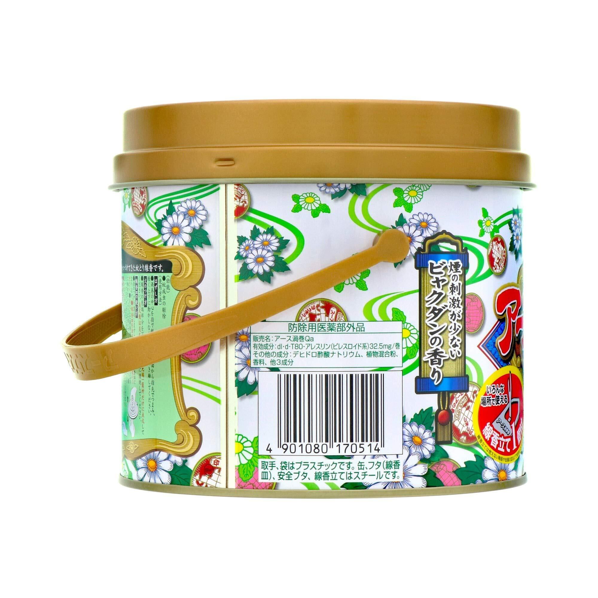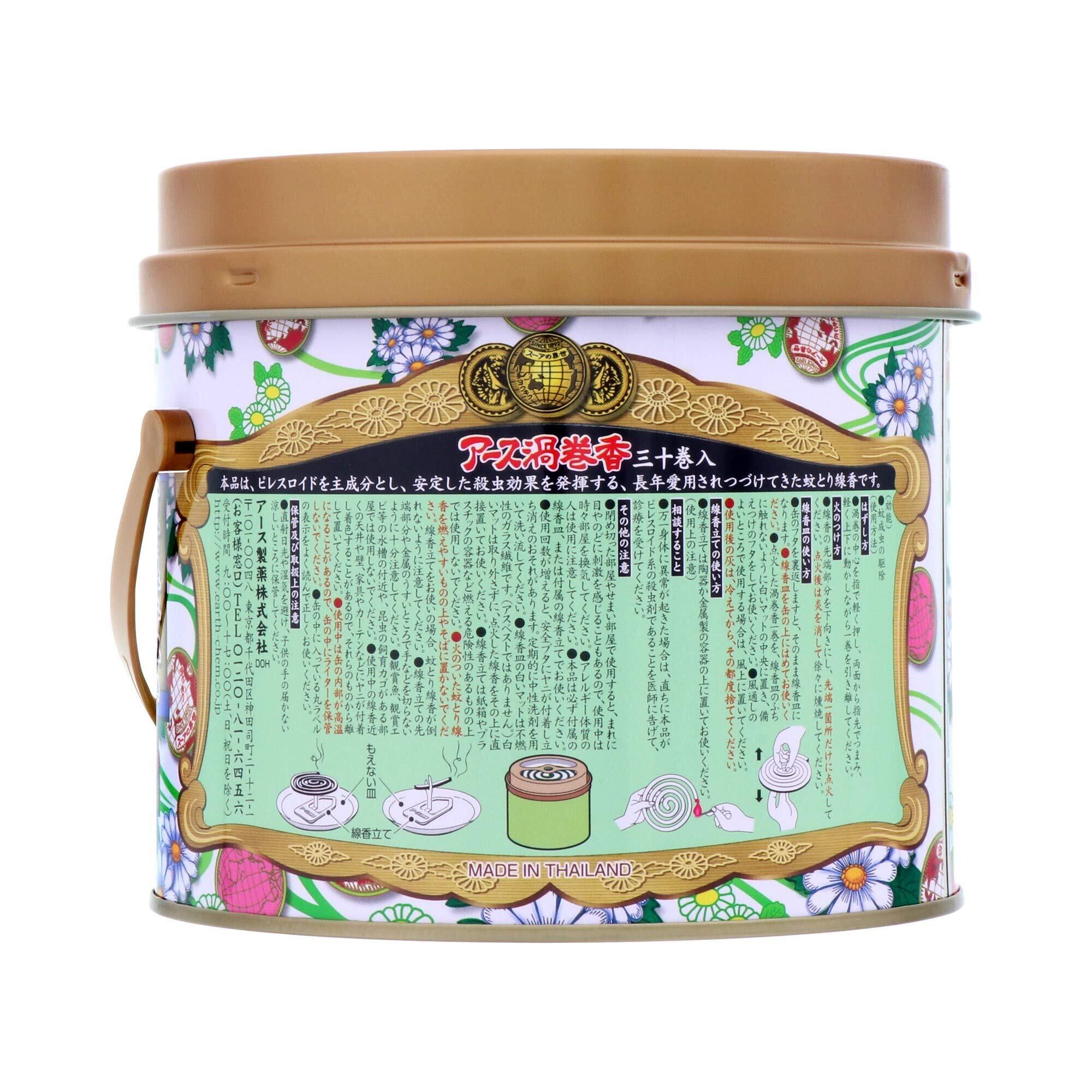 アース渦巻香 蚊取り線香 30巻缶入 線香立て付き 蚊 駆除 忌避 長時間 屋内 屋外 蚊よけ 蚊とり 侵入 対策 キャンプ アウトドア