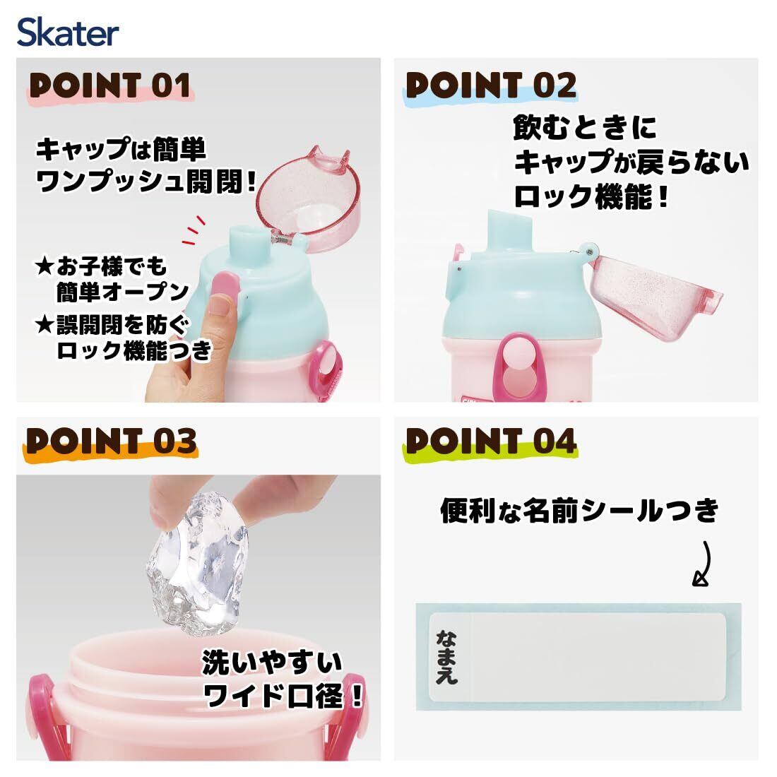 スケーター() 子供用 プラスチック 水筒 480ml ワンプッシュ開閉 抗菌 子供に優しい 軽量 抗菌加工 日本製 パウ・パトロール GIRL PUP 女の子 PSB5SANAG