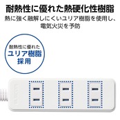 差込口には耐熱性に優れたユリア樹脂を使用しており、万一の発熱の際にも融解しにくく、電気火災の防止に有効です。