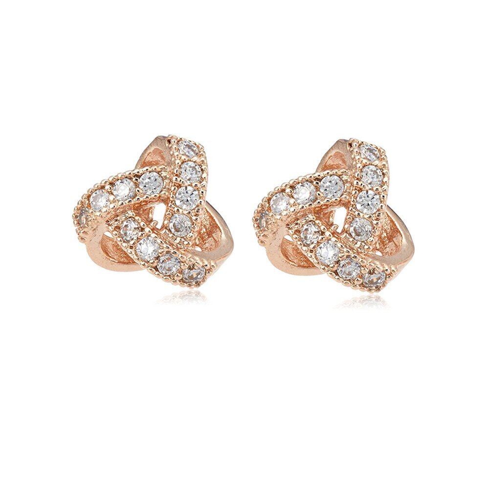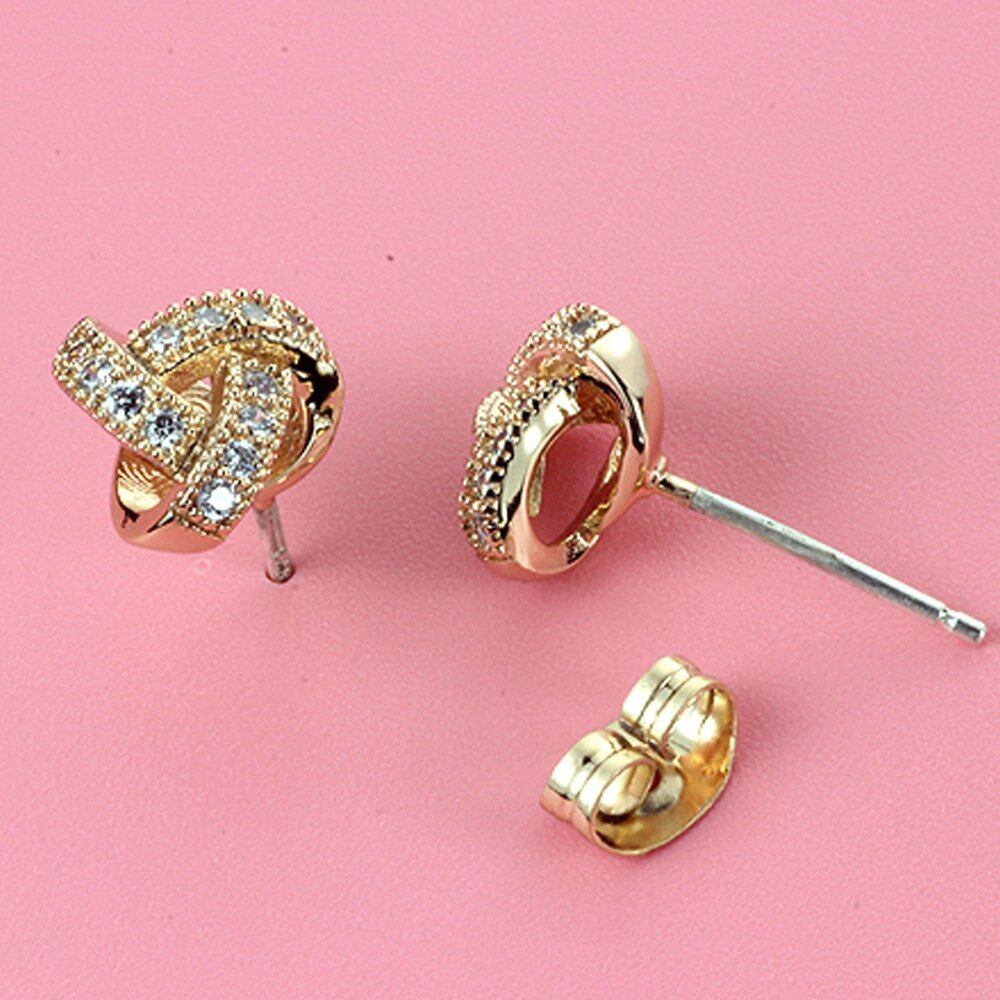 [K.L.Y] ピアス レディース ダイヤモンドCZ 編み込み 織込み シンプル フェミニン 大人 18金RGP (ピンクゴールド) 2点セットギフト包装