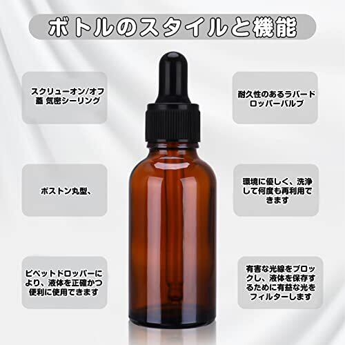 【様々な用途】エッセンシャルオイル、香水、ローション、その他の液体を保管できます。遮光瓶で保管することで、紫外線による劣化を防ぎ、品質を保ちます。さまざまなニーズにお応えします。