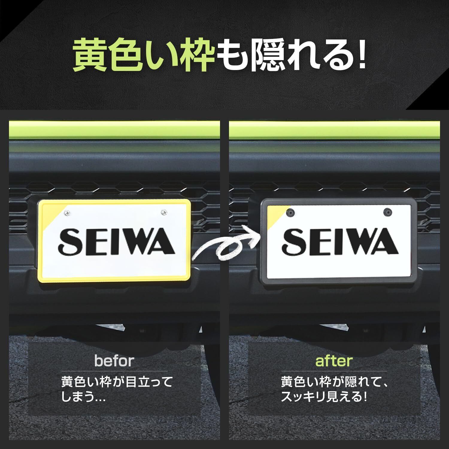 セイワ(SEIWA) 車種専用用品 ジムニー JB64 専用 フロント ナンバーフレーム IMP225 ボルト&ワッシャー 2個付属 外装品 ドレスアップ ご当地ナンバー 黄色枠 隠れる