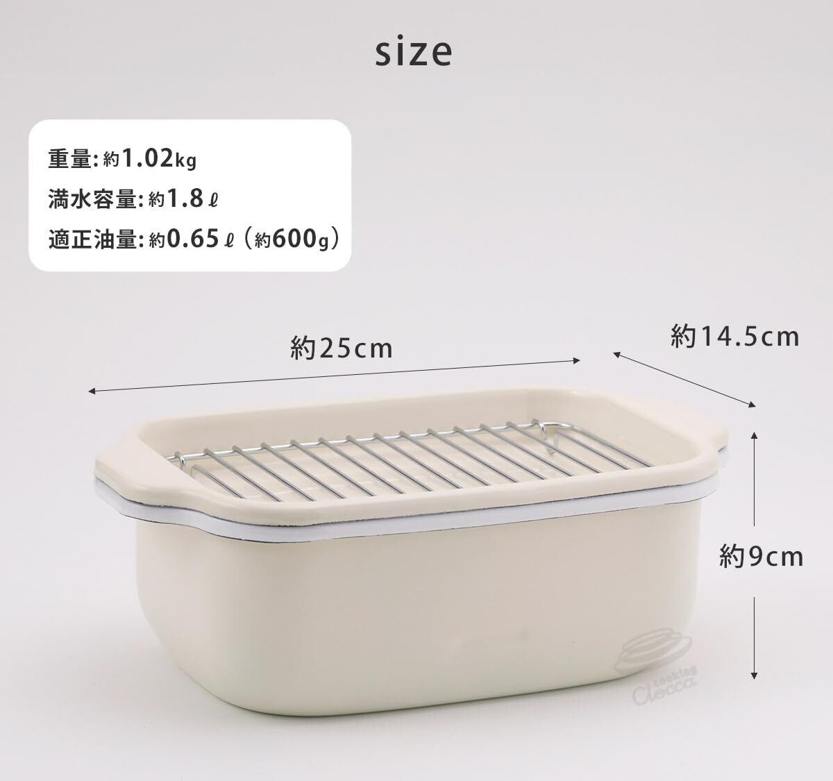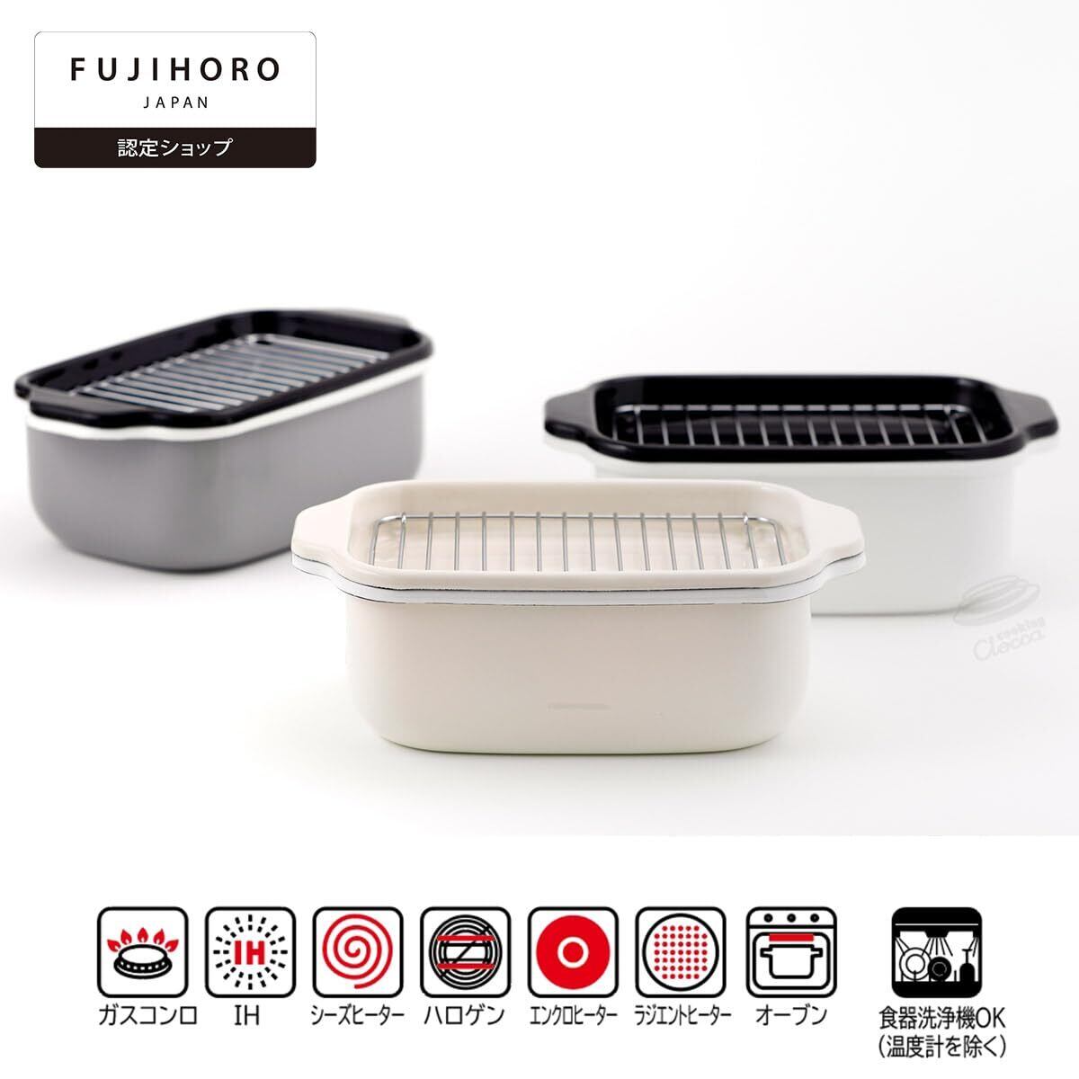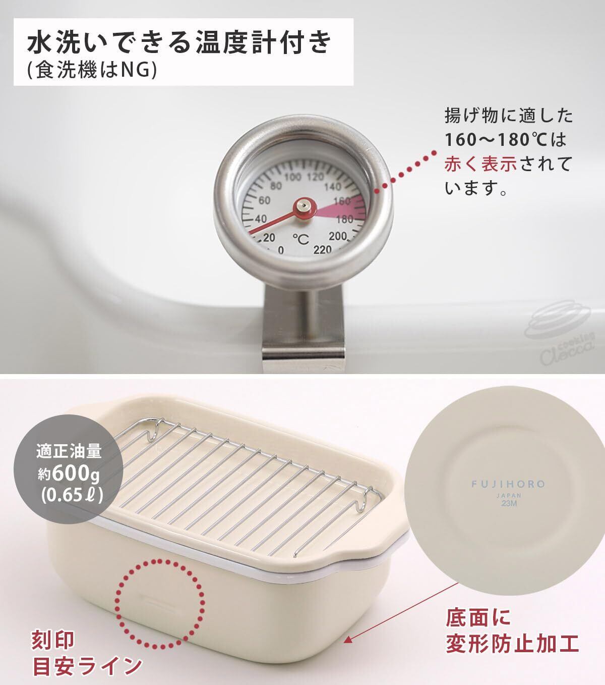 富士ホーロー 角型天ぷら鍋 ガス火 IH対応 温度計 揚げ網 バット付き 20cm バニラ TP-20K.VA