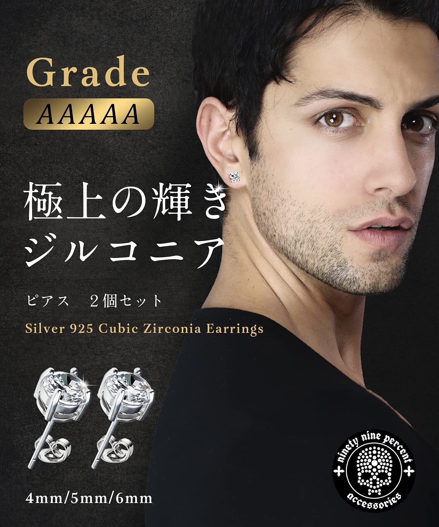 ピアス メンズ 金属アレルギー対応 ジルコニア採用 ユニセックス 両耳 シルバー925 (4mm)