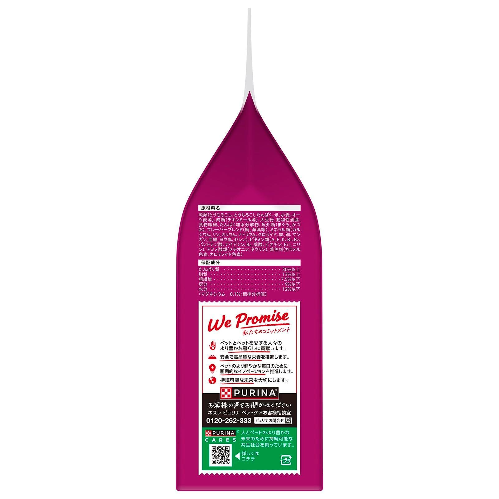 厳選したかつお、まぐろ、鯛、海藻、大麦の5種の食材を絶妙にブレンド。天然の食物繊維を配合し、体内の毛玉を自然に排出するように配慮。安心の合成着色料、香料無添加。たっぷり2Kg。