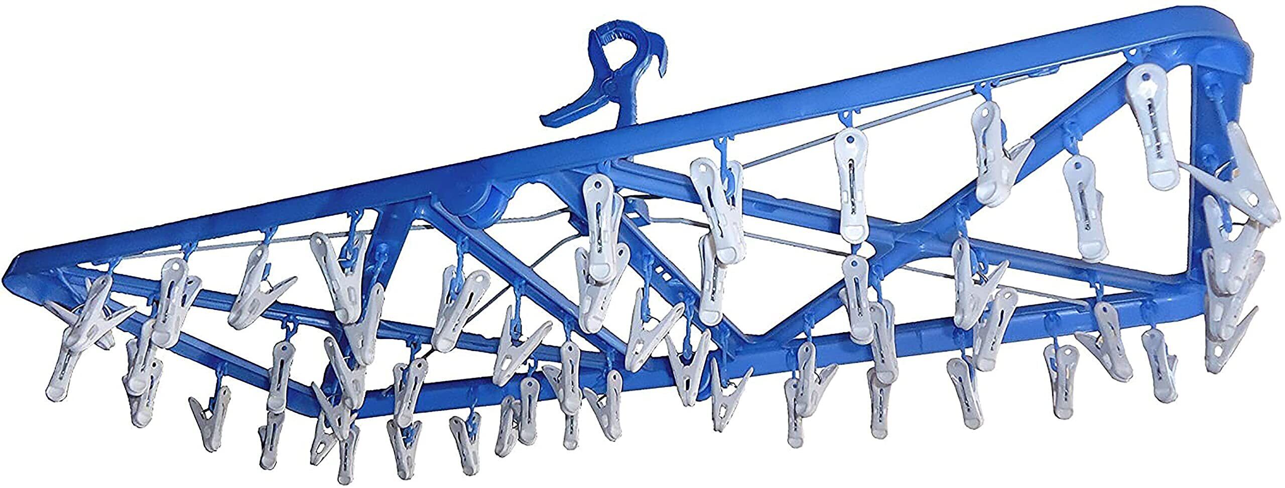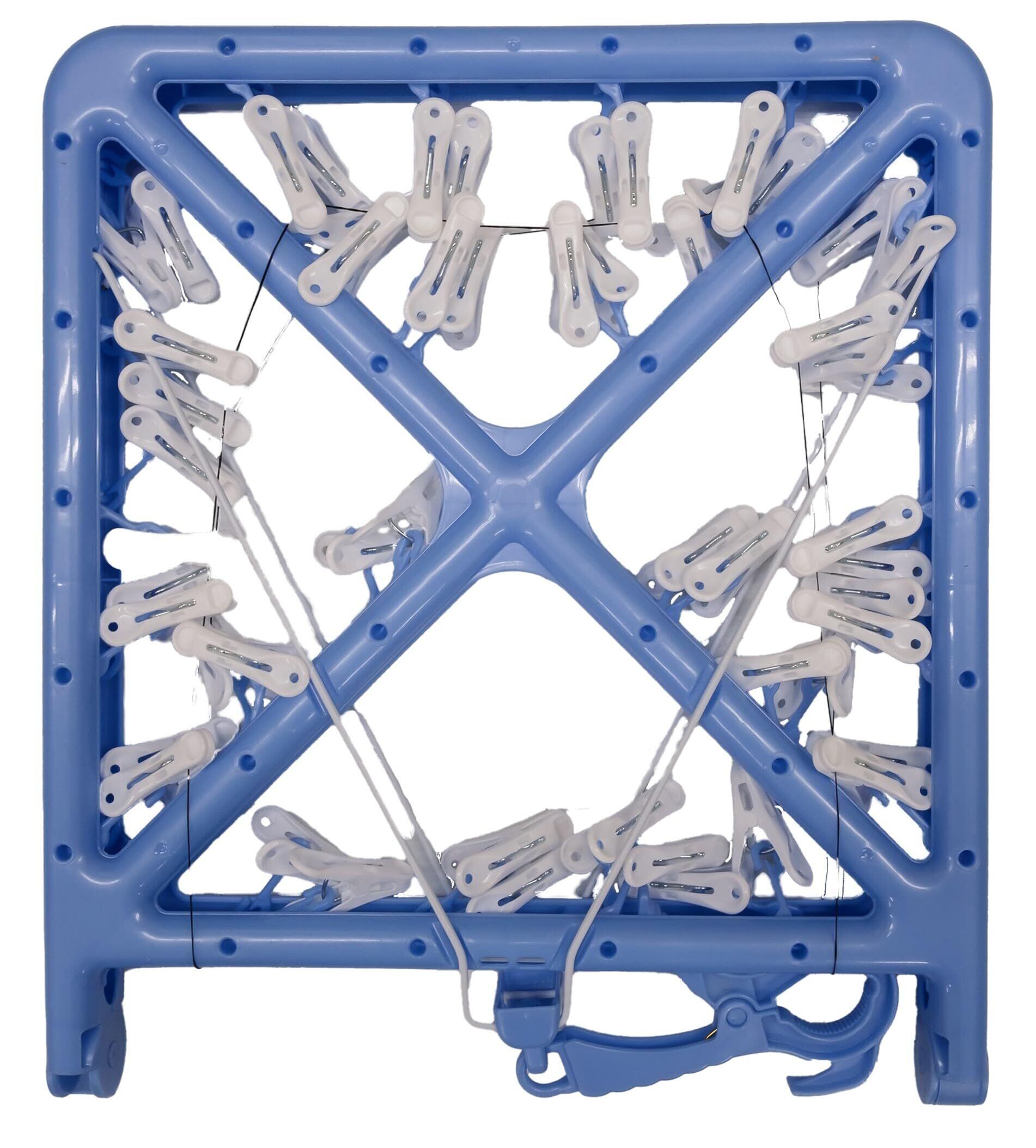 【折りたたみ式・省スペース】水勘製簾所 ワイヤー角ハンガー ブルー 約84×39×30cm カモイフック付き|多機能物干し 日本製