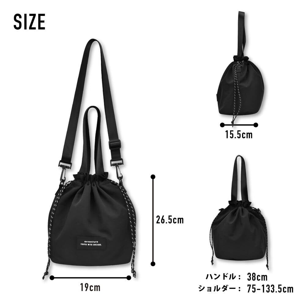 [アヴェンチュラ] 巾着バッグ 2way 小さめ ショルダーバッグ トートバッグ 通勤 通学 旅行 レディース メンズ 女子 男子 大人 学生 ママバッグ カジュアル 0029 ブラック