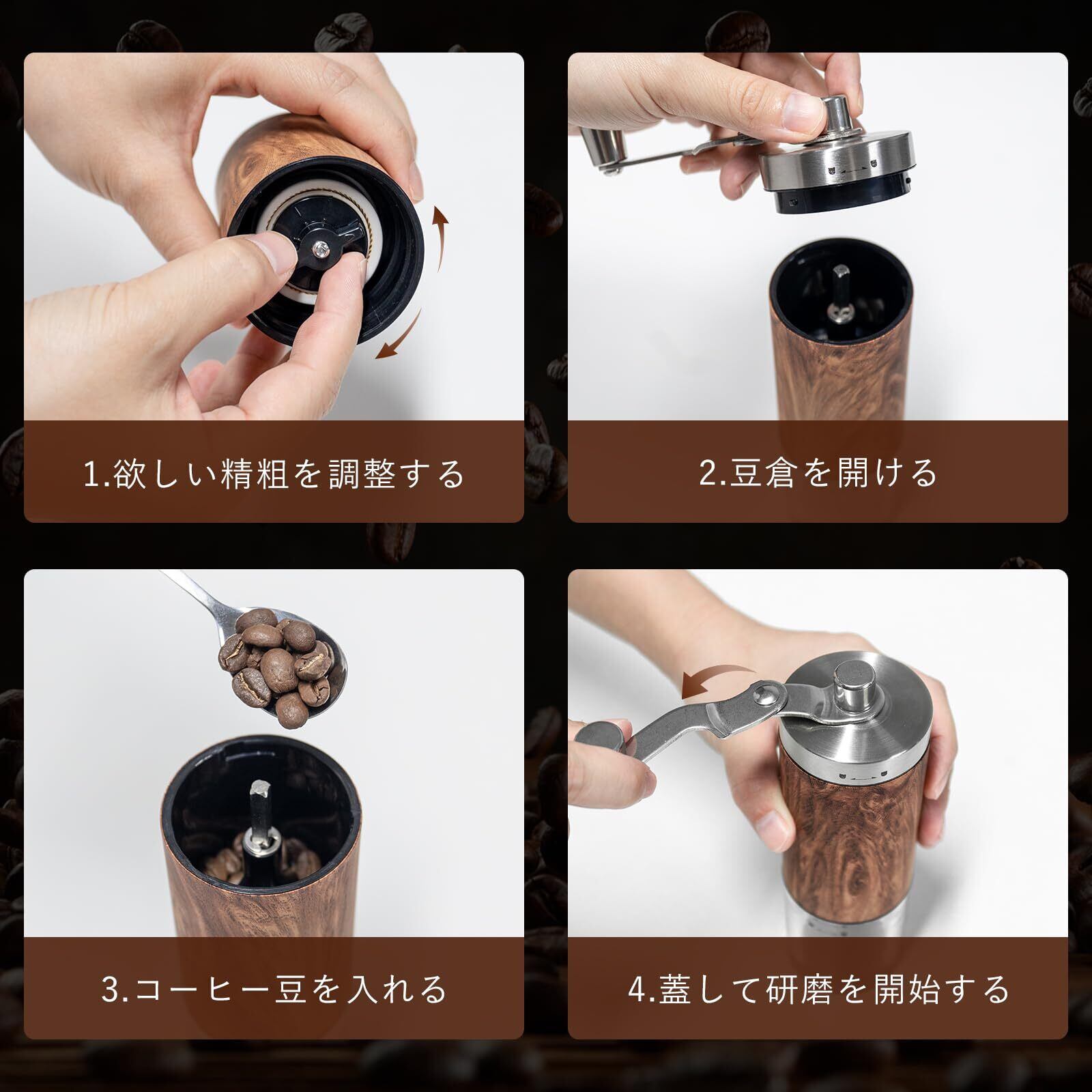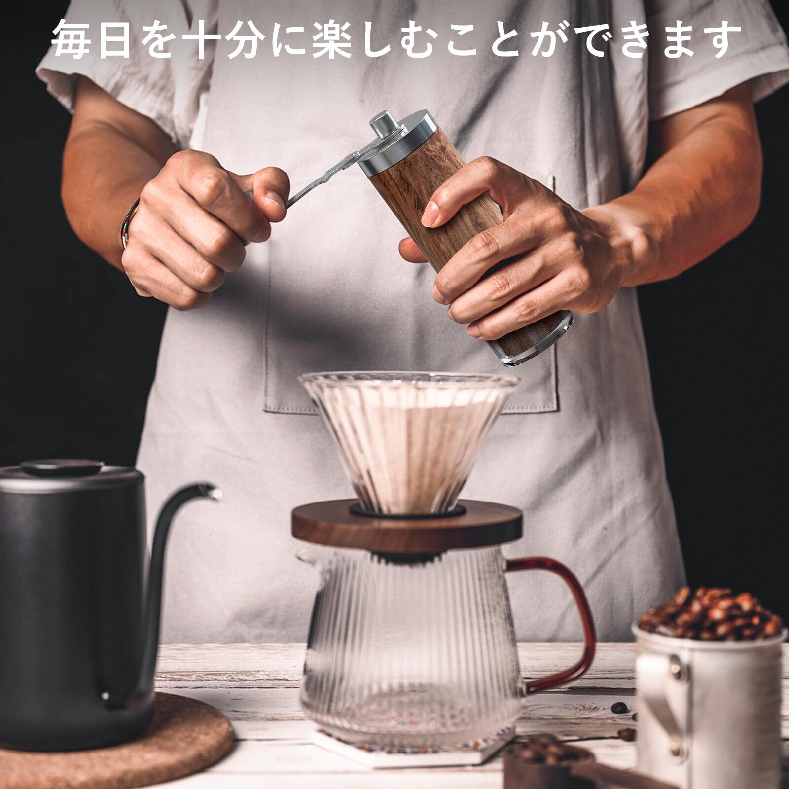 高品質設計:木目色の外観デザインは、伝統的な黒よりも質感を増し、美観であると同時に汚れに強く摩耗に強く、セラミック粉砕コアを採用し、錆びたり鈍くなったり、研磨中の温度が高くなったりしてコーヒーの食感に影響を与えたりすることはありません