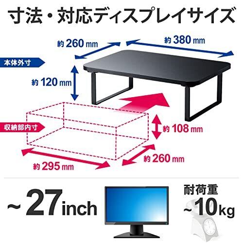 エレコム モニター台 モニタースタンド ディスプレイ 台 ~27インチディスプレイ 高さ12cm 耐荷重 10kg 幅38cm×奥行26cm ブラック PCA-DPSW3812BK